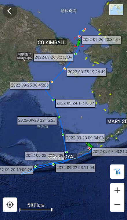2022年9月19日,“南昌”舰率领的中国海军舰艇编队与参演的俄海军舰艇组成中俄联合编队,穿越白令海峡并进行巡航。