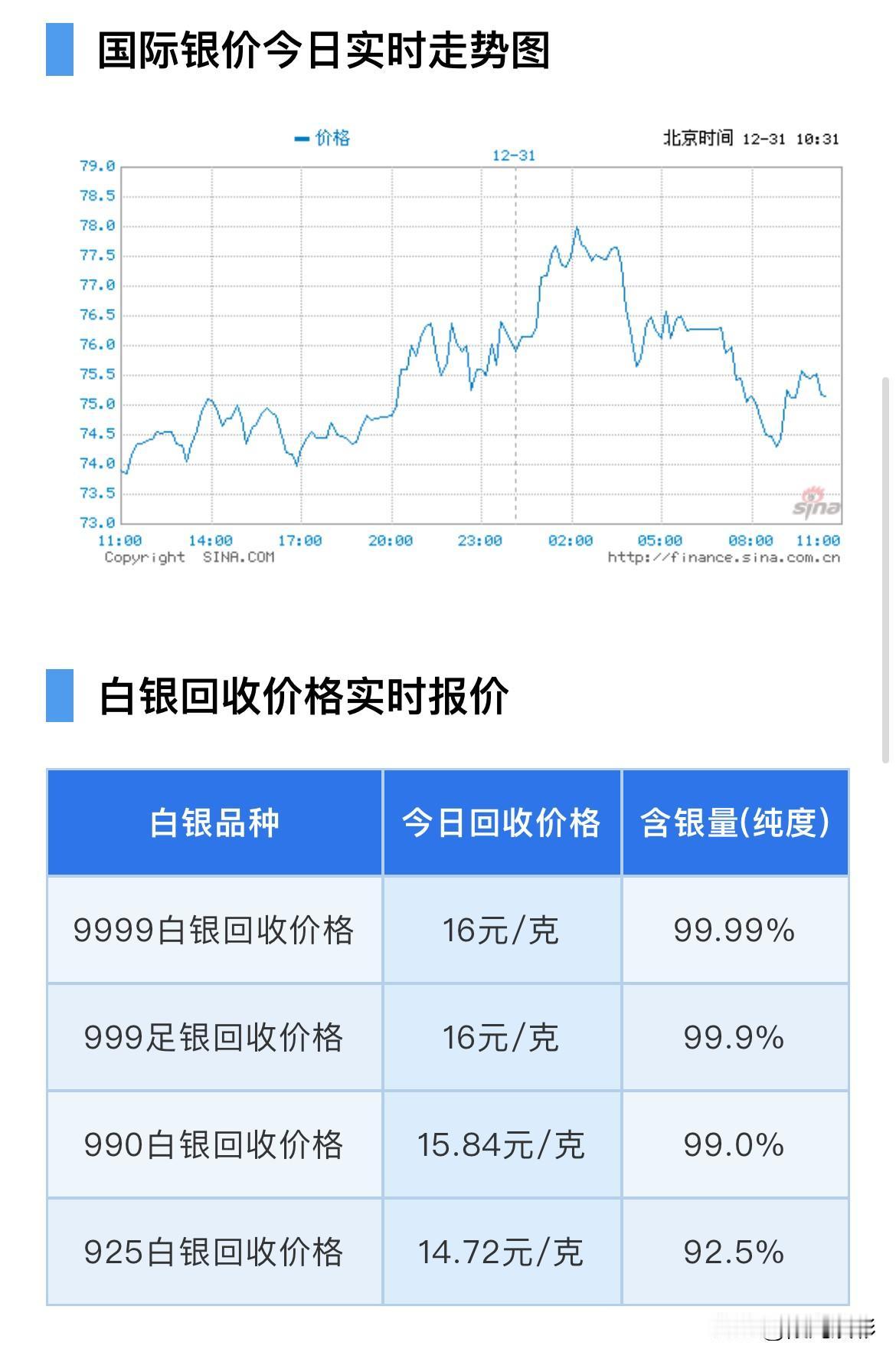快来看看! 今天白银回收价格是多少? 9999白银回收价格16元/克, 9