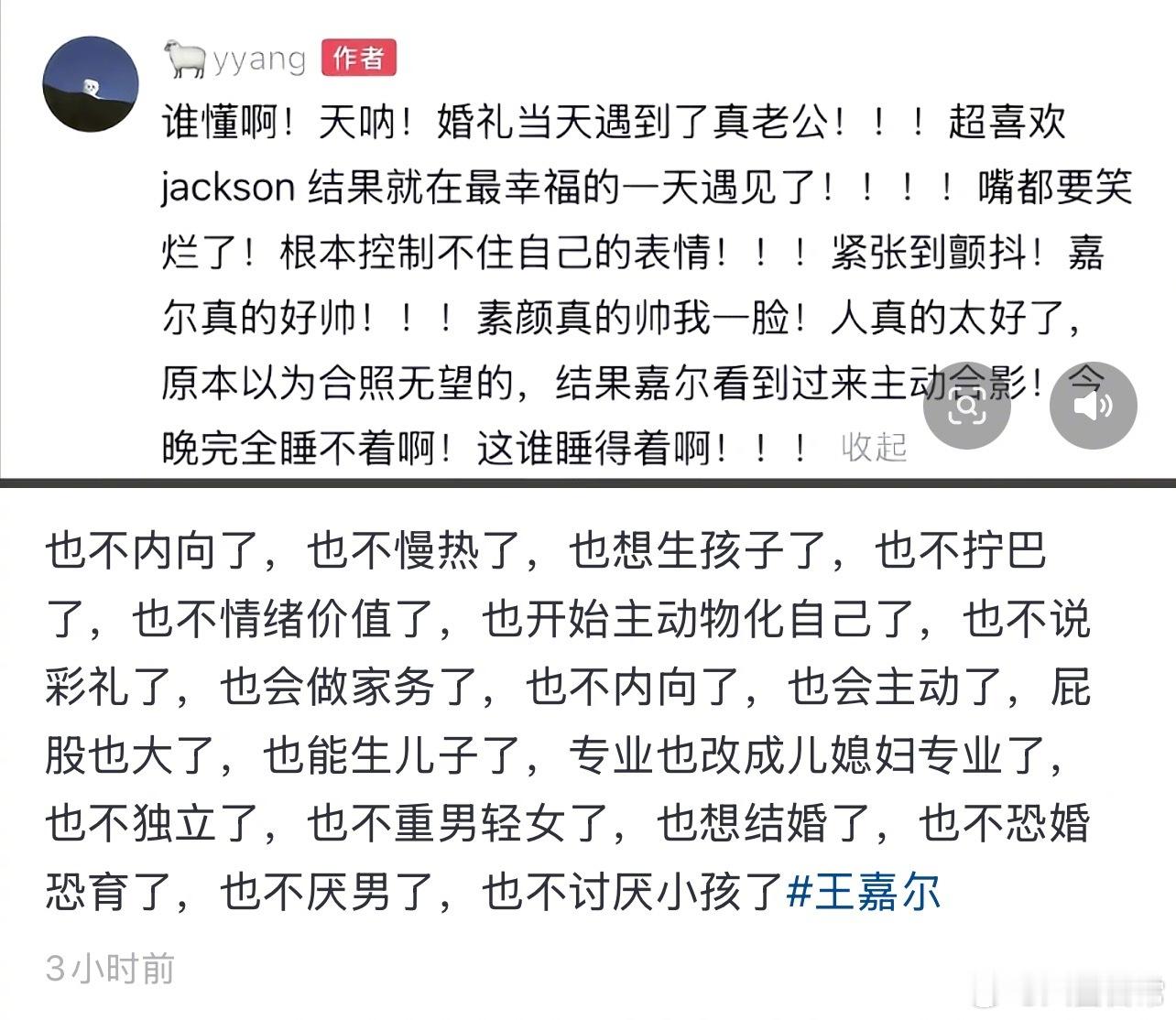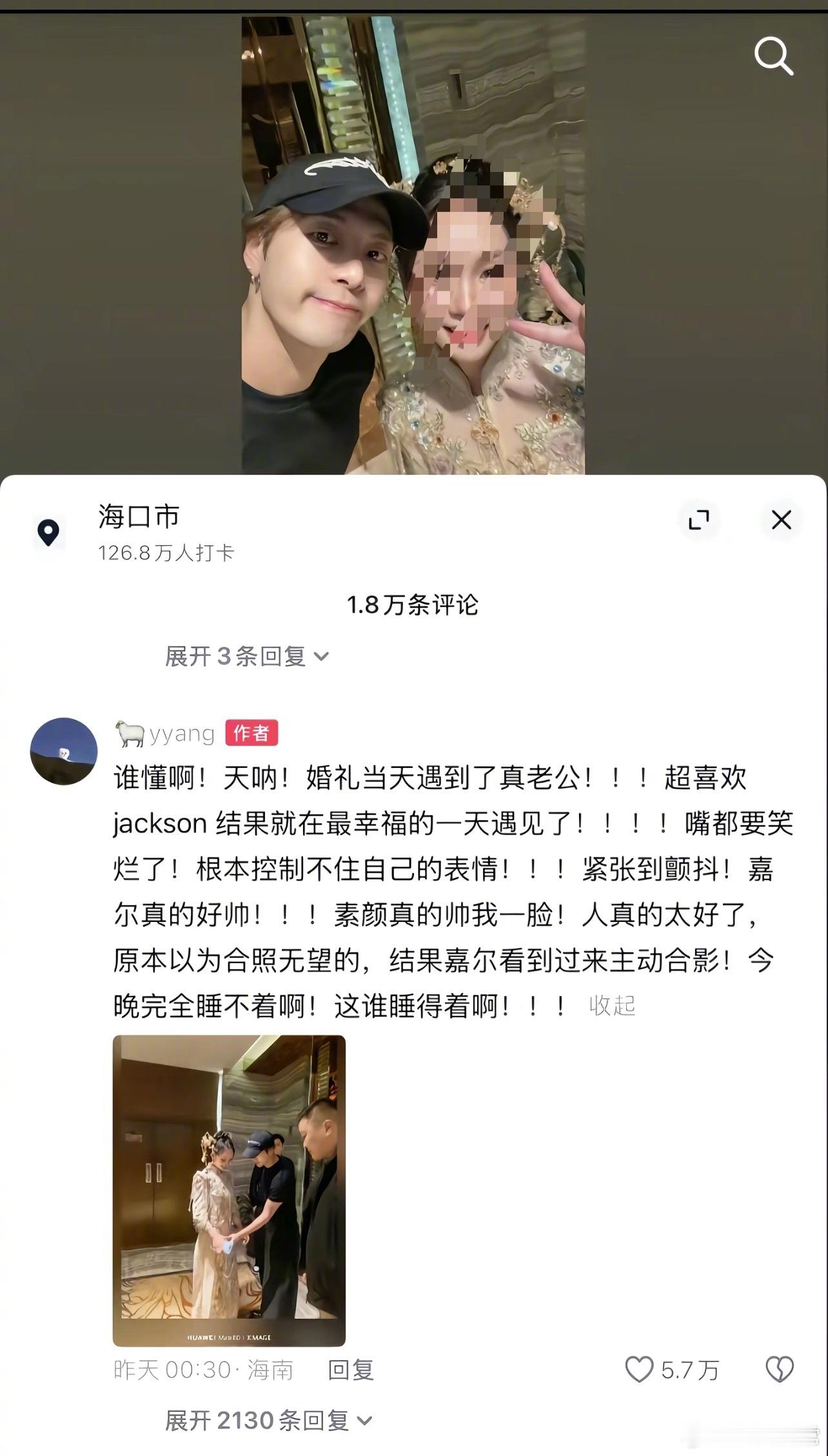 新娘结婚偶遇王嘉尔,合照配文“婚礼当天遇到了真老公”引发热议王嘉尔 真老公