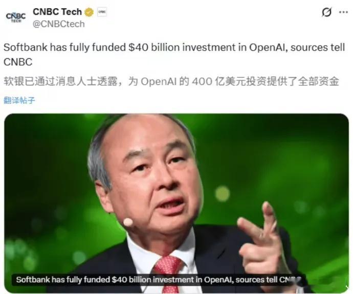 孙正义的软银要给OpenAI投资400亿美元,大家怎么看?