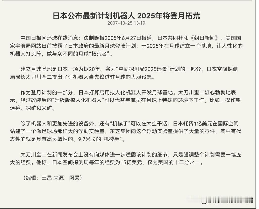 2025年还有不到4个小时就要结束了,不知道日本网友的月球基地建好了吗?机器人登月了吗?载人登月启动了吗?