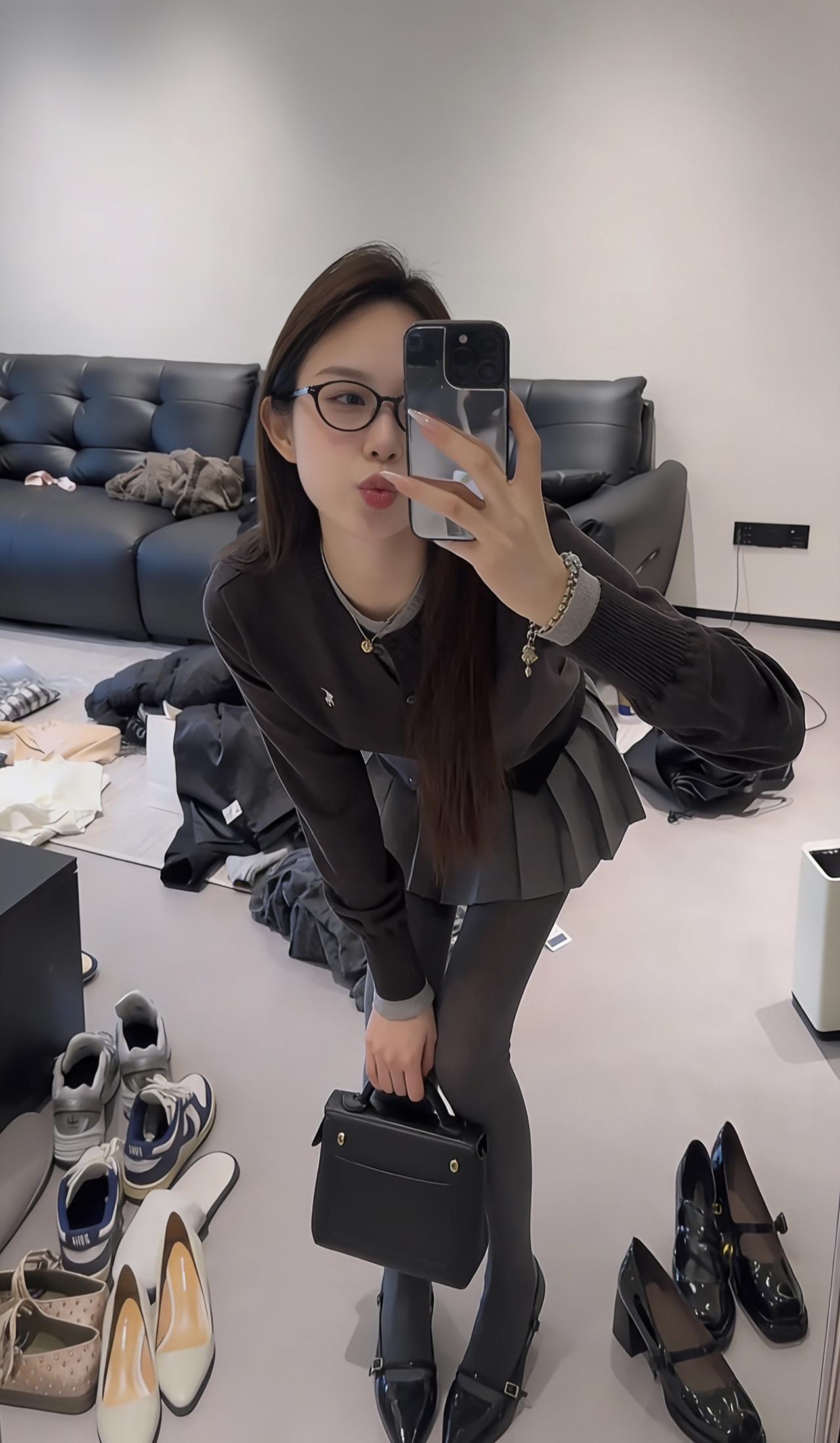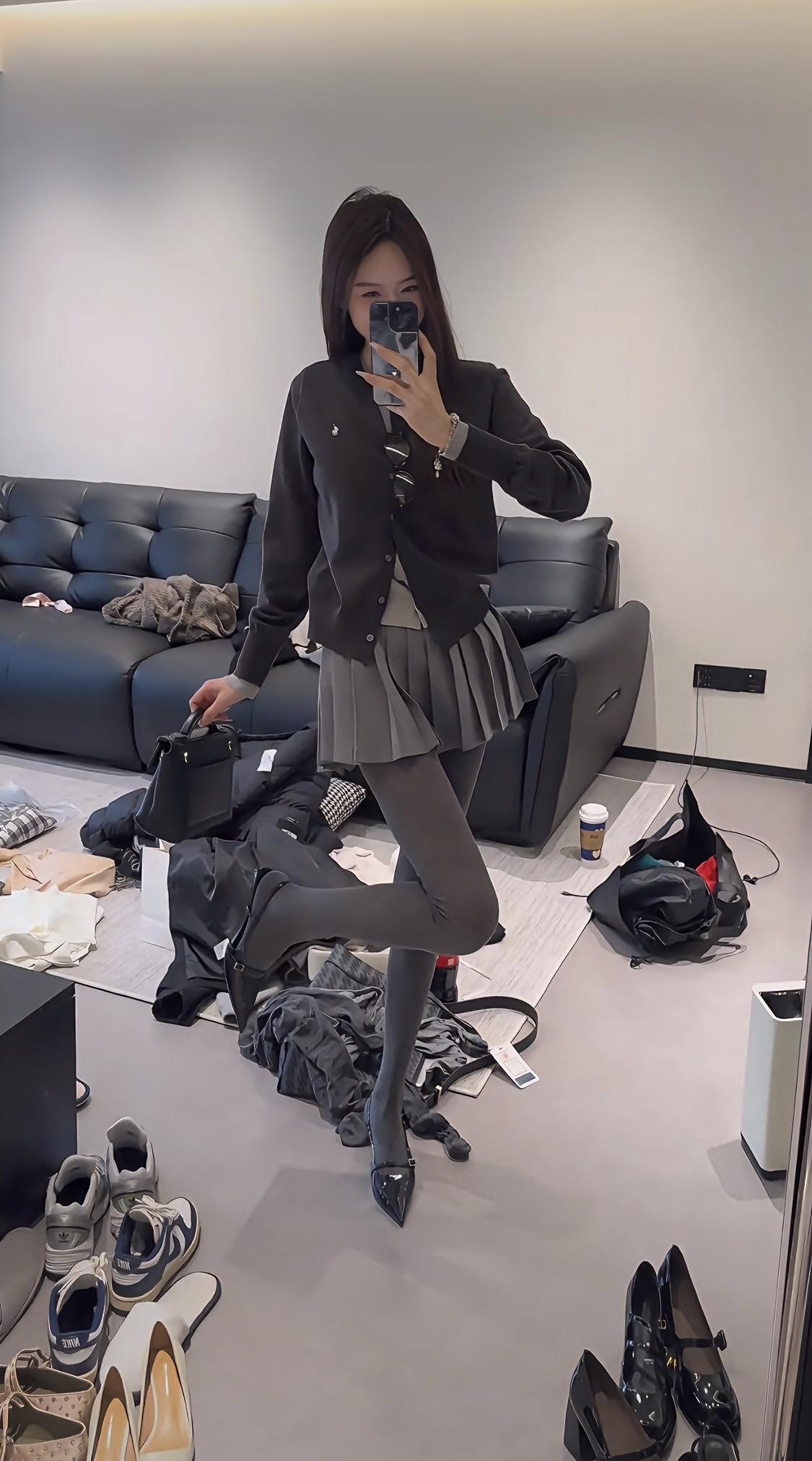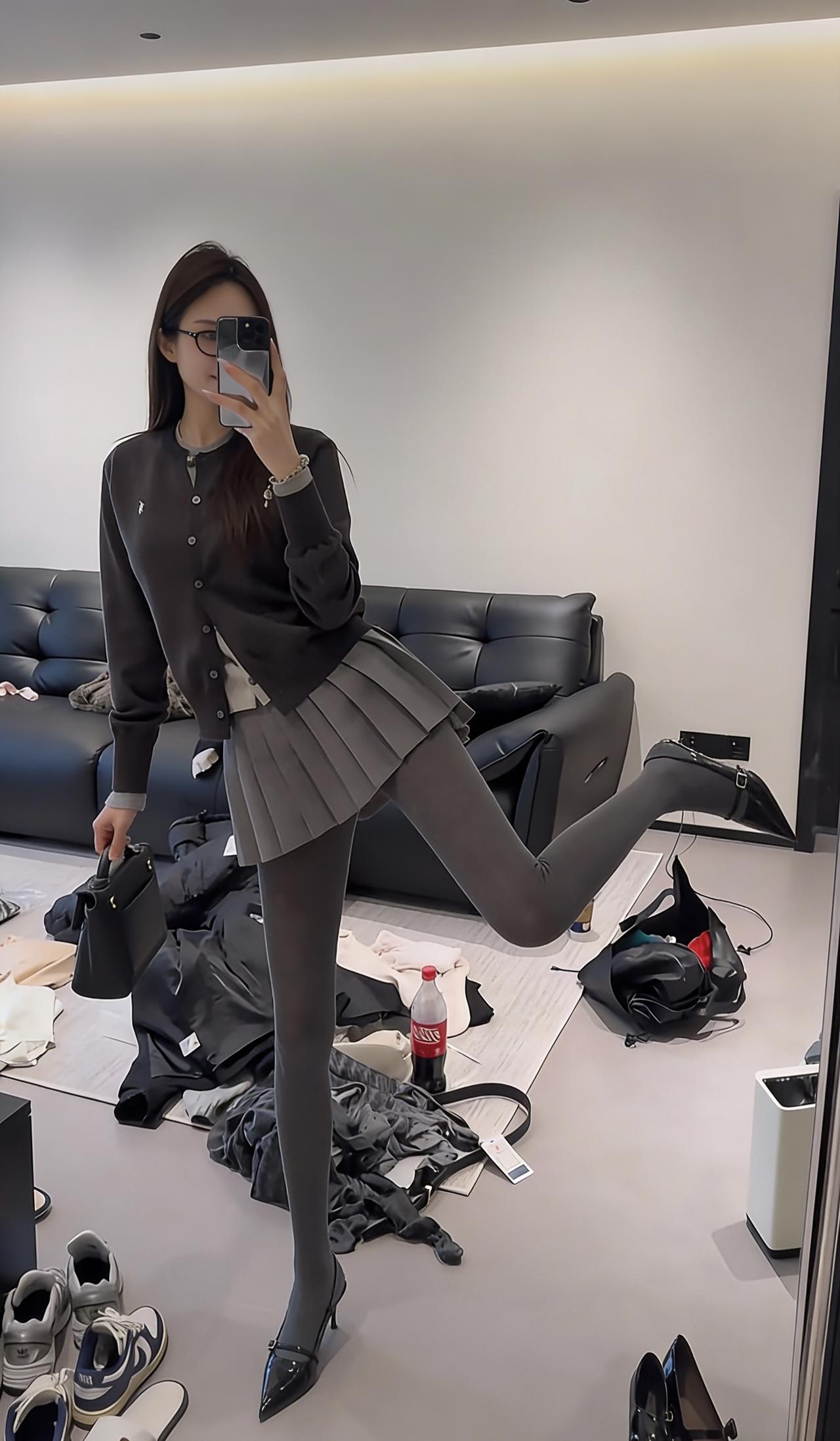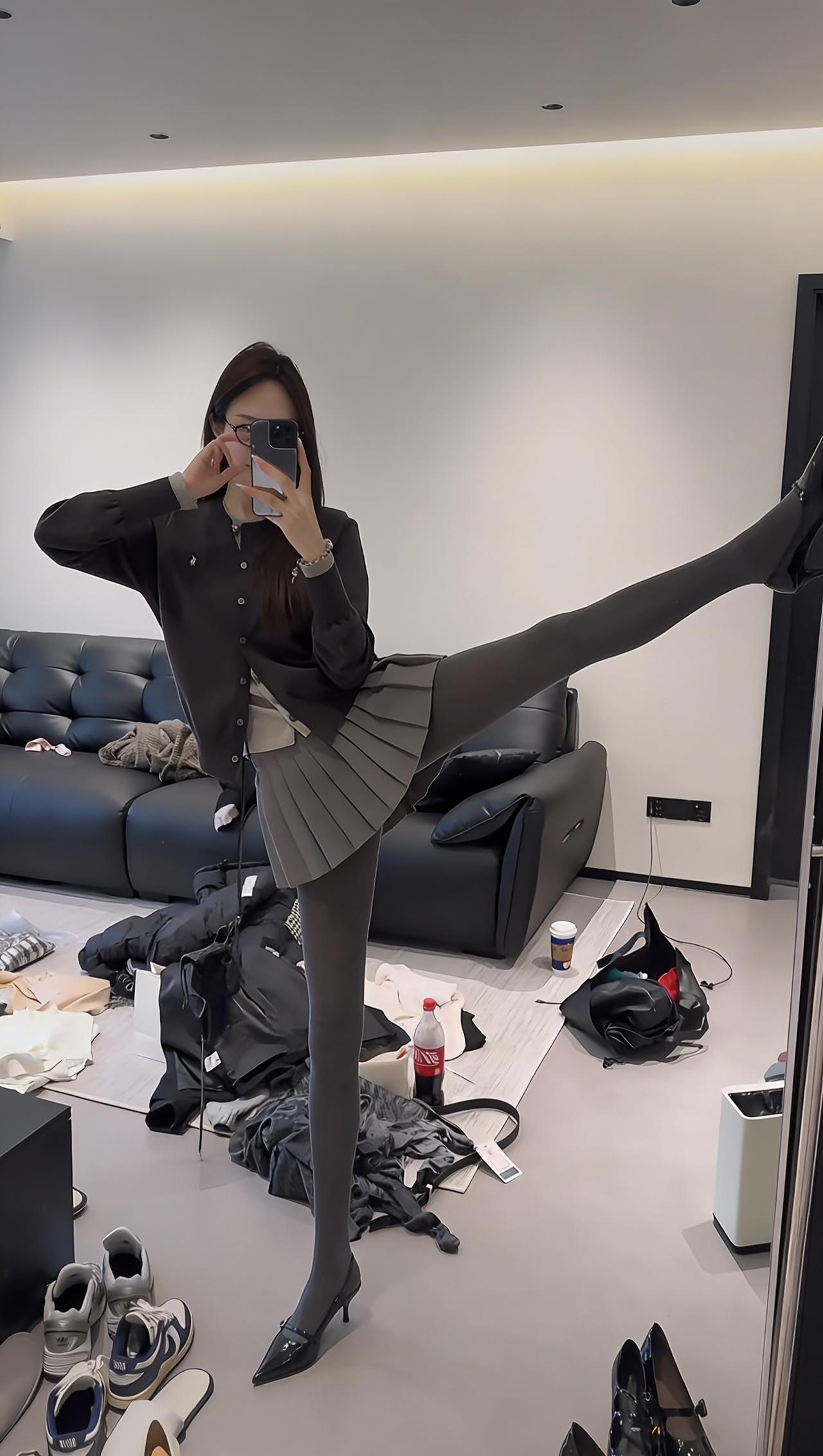 这套穿搭以简约休闲风为主,结合了舒适感与日常时尚感,上衣大概率是宽松版型的基础款(如T恤、卫衣),下装适配半蹲、鞠躬等动作,选择了有一定弹性的裤装(如运动裤、休闲裤),搭配的细高跟则巧妙提升了整体精致度,中和了休闲风的随性,手机作为配饰遮挡面部,增添了一丝俏皮感。 适合场合 日常街拍:简约的搭配+细高跟的小心机,出片效果好,能轻松打造随性又时髦的氛围 好友聚会:舒适的版型方便活动,半蹲鞠躬的可爱动作很适合和朋友互动拍照 休闲出游:日常且不挑场景,走路逛街无压力,同时细高跟能让身形更显利落