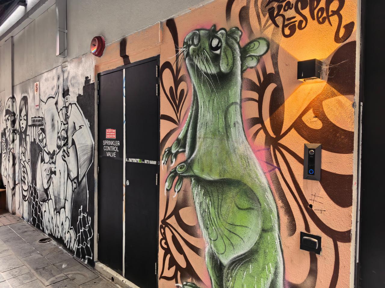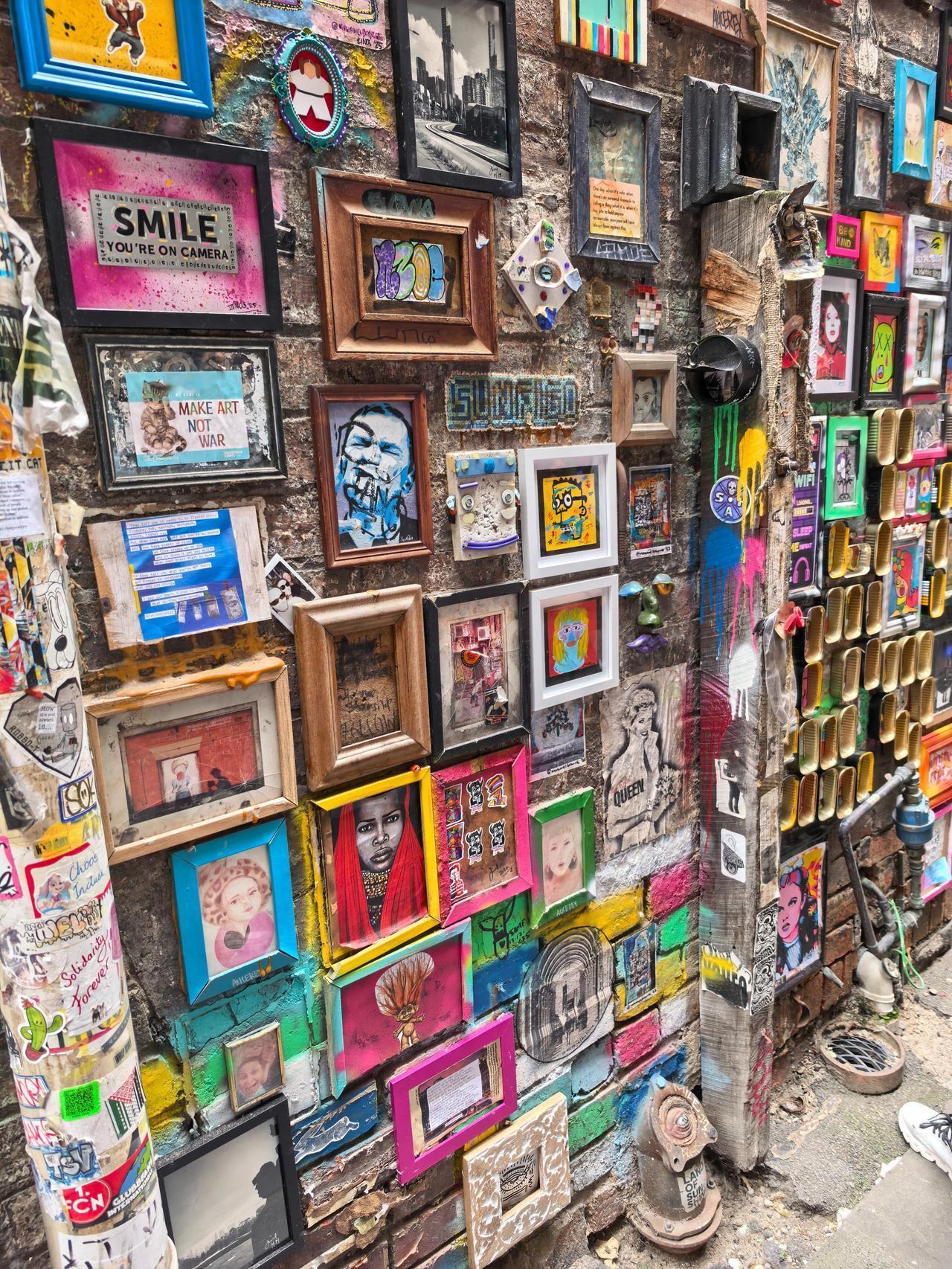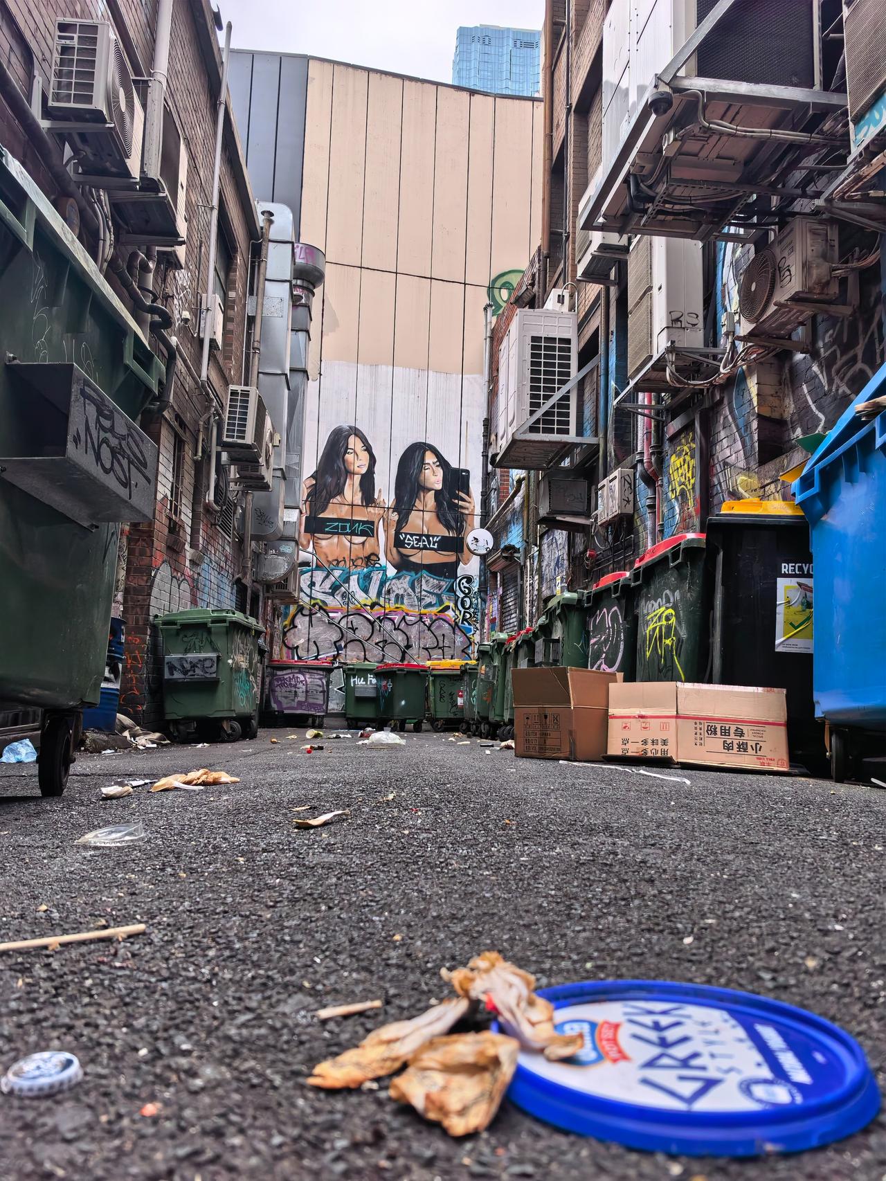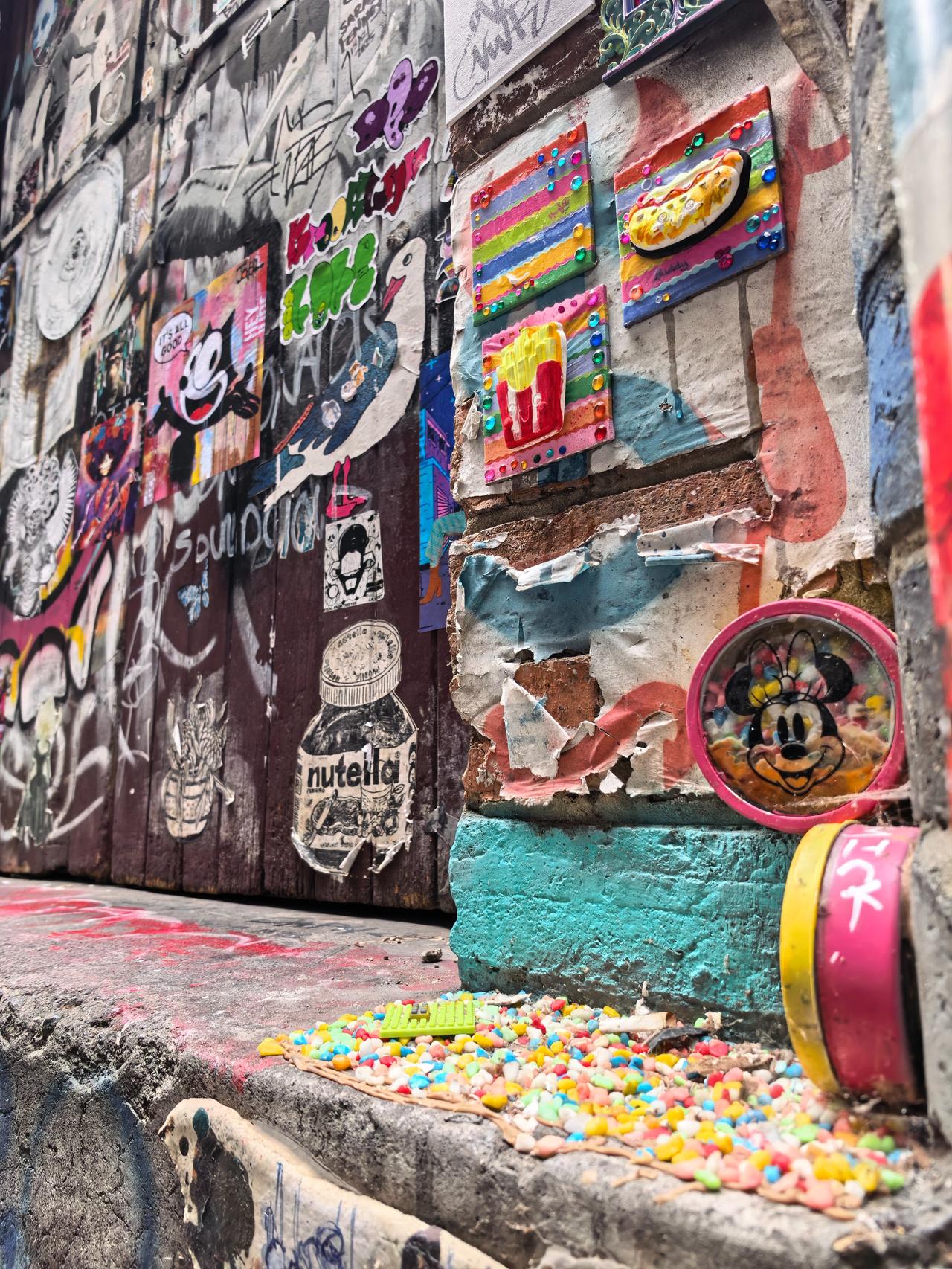 墨尔本中心小巷子,自殖民时期遗留[看] 无数街头艺术驻留,俗称涂鸦[可爱] 因为2005年的英联邦运动会,平面涂鸦被禁止,年轻人通过相框的方式,创造了立体涂鸦[大笑] 墙面陶瓷片,建筑外墙立体雕像有讽刺政客与社会的风格[笑]