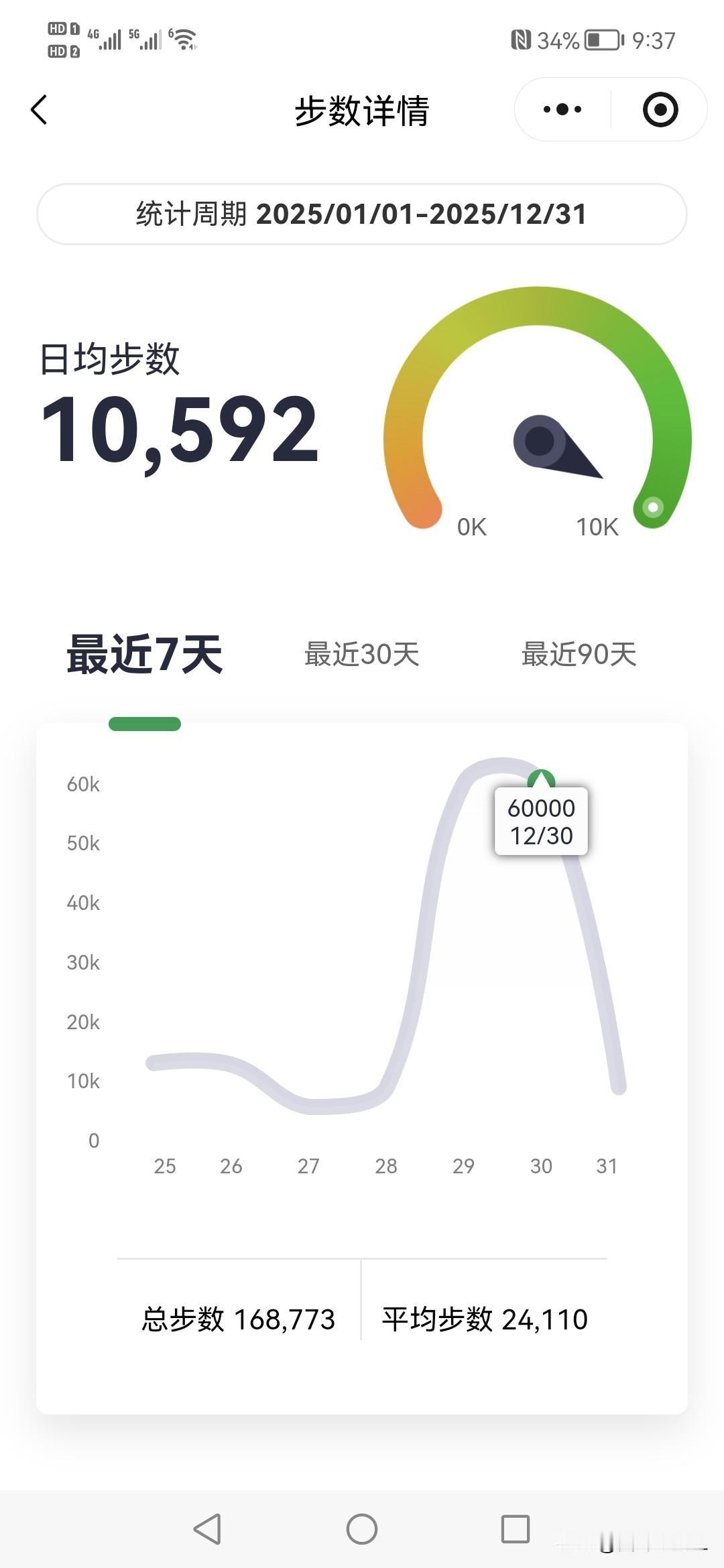 2025年坚持运动,一年的日均步数是10592步,明年目标,每一天15000步,加油!