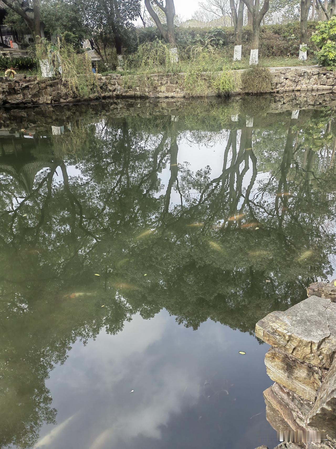 静谧湖面倒映绿意,鱼儿悠游自在,真好!