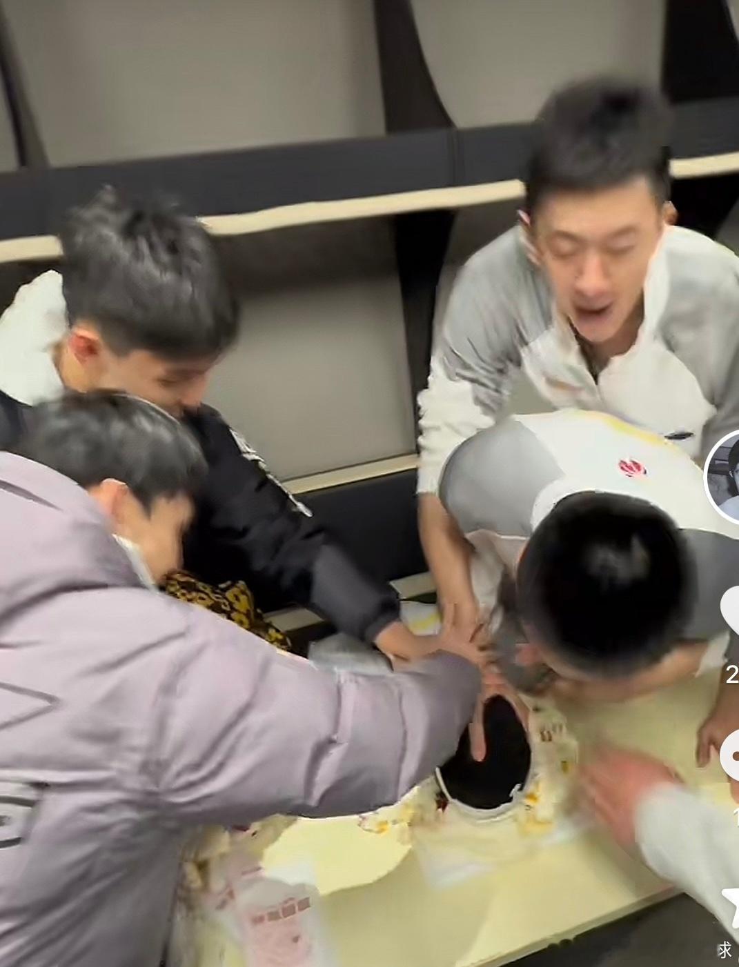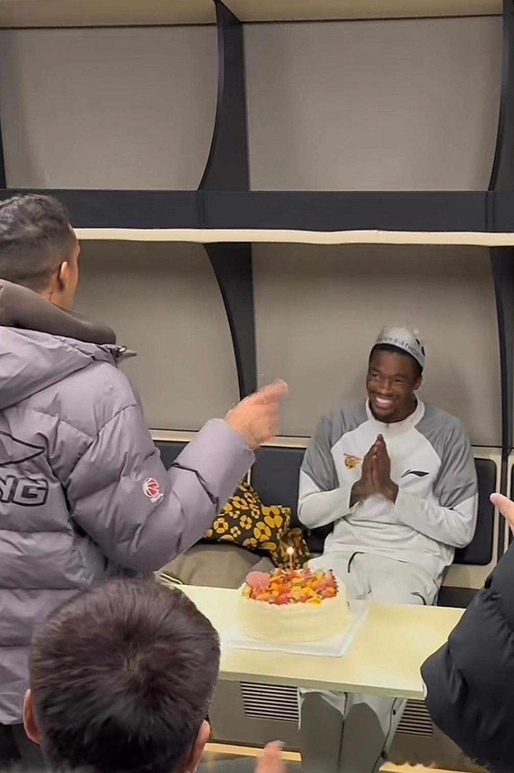广东宏远男篮主教练杜锋指导社媒更新动态,广东男篮全体成员为萨姆纳庆祝生日!由徐杰亲自操刀,把上面一层水果扒开,然后开启宏远男篮传统节目,蛋糕拍脸。萨姆纳那叫一个开心啊,看来他非常享受来到广东男篮过得第一个生日,这队内气氛好好啊!还有一个消息就是,今天有人拍到萨姆纳去便利店购买了两瓶红酒,难得晚上是要和朱总搞两杯吗?