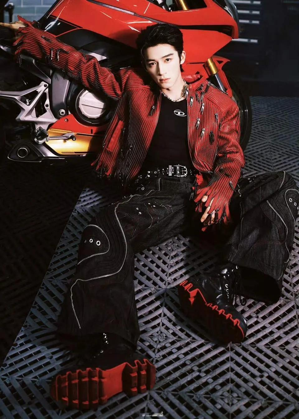 王星越跨年出图好帅!!!!!红色挑染红色穿搭红色🏍️