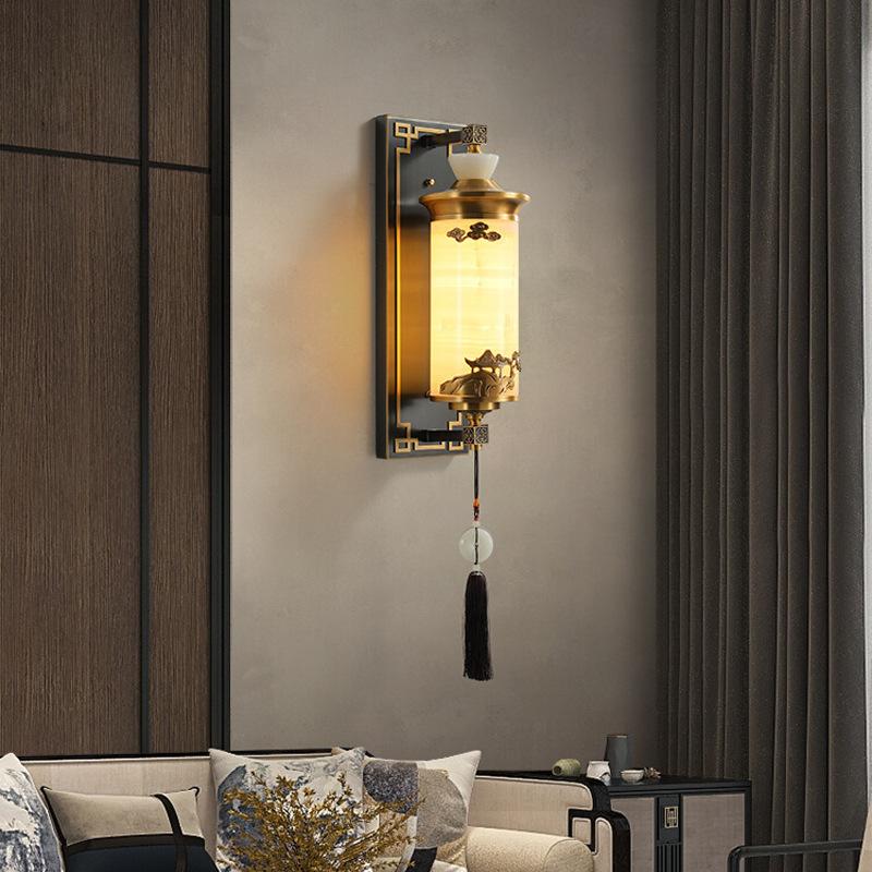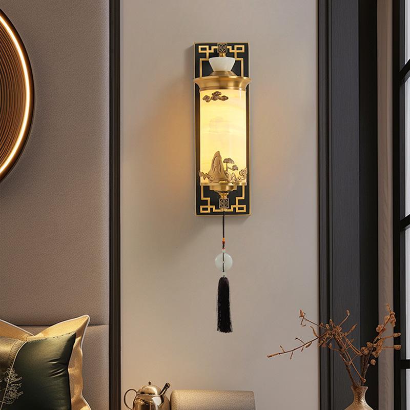 新中式壁灯选它,客厅瞬间有了东方韵味 家里装了这款新中式全铜玉石壁灯,直接让客厅的东方氛围感拉满🏮 全铜的灯体质感超扎实,搭配天然玉石灯罩,暖光透出来温润又高级,灯身的浮雕和流苏吊坠设计,把中式美学的细节拿捏得死死的,国风韵味直接拉满。 不管装在客厅电视背景墙、书房,还是别墅卧室床头、酒店走廊都超合适,轻奢又大气,跟新中式、禅意风装修适配度满分。 从材质到工艺都透着精致,装在家里不仅是照明,更是一件能提升空间格调的艺术品,国风爱好者真的别错过!