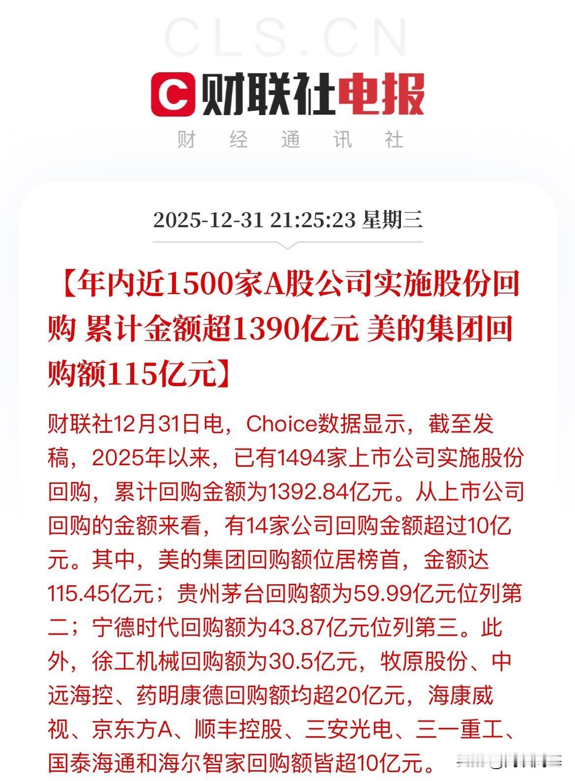 2025年A股1500家回购了1390亿元,但你只看到买的,那今年以来股东累计减持多少,预估将是4500亿到5000亿元,搞不好都要突破5000亿元了,A股最让人诟病的一个就是大股东变着法减持了