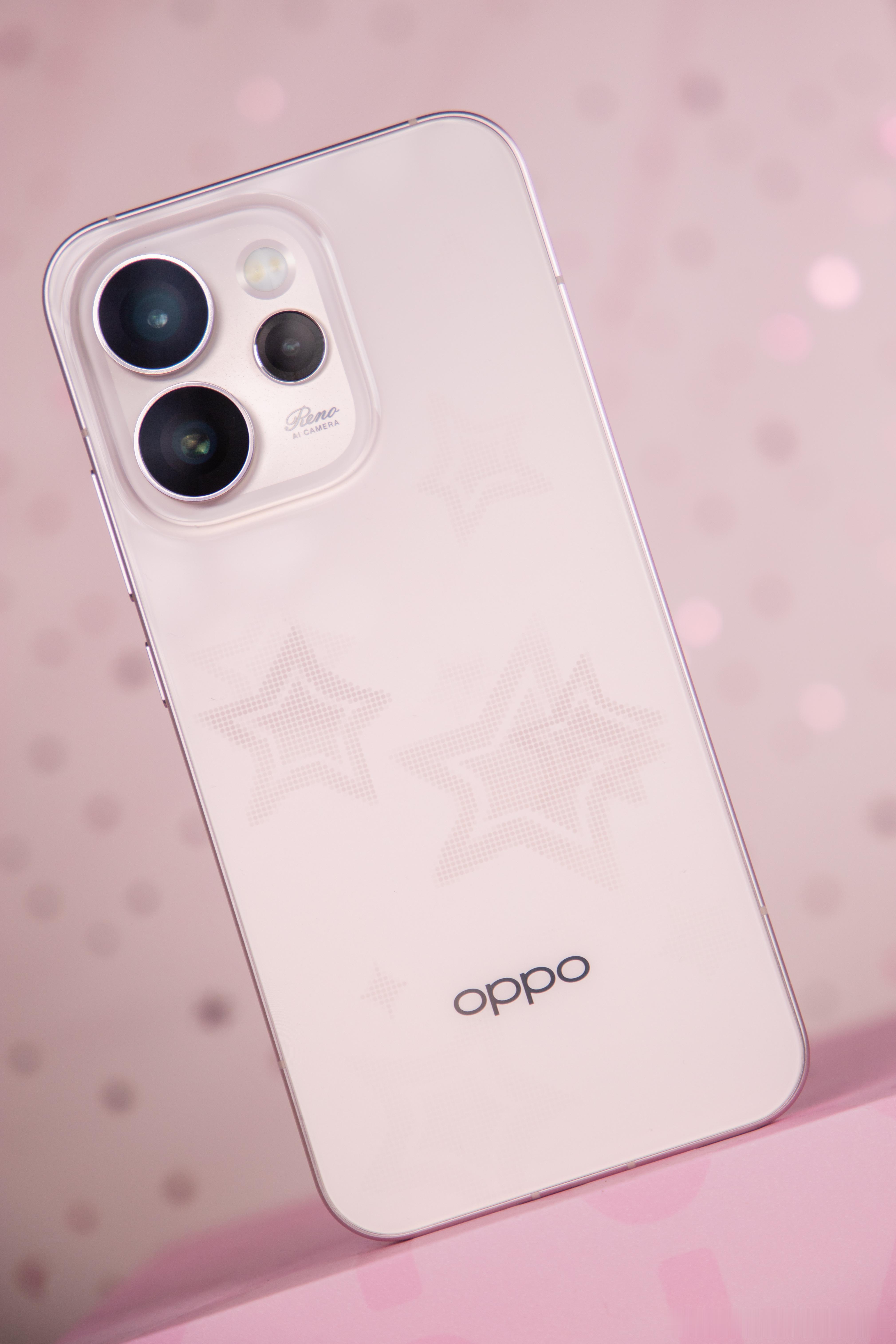 2025年的最后一天,分享一下OPPO Reno15星星粉~ 温柔杏粉底色+星闪光栅工艺,转动机身就有星星闪动,像握着银河碎片,少女心直接焊在机身上!大家可以看图5的Live图,就是那种感觉,是不是很漂亮?