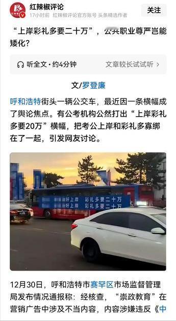 看到媒体报道某地一个考公辅导机构的广告,“上岸彩礼就多二十万”,想出这个广告语的人真是人才,虽然这种广告语是符合我们的社会公序良俗和价值观导向,但现实中可能确实如此。 一个考上公务员或事业编制的女生,在相亲的时候肯定要成为香饽饽,有编制的人社会地位完全不一样,要不然怎么会那么多人执着于考公考编呢? 不过现在每年考公考编的人太多了,竞争激烈的情况下,考公辅导机构的生意就非常火,而且还分很多种辅导,国考、地方考、选调、遴选等等,有的机构为了抢客户,甚至都用“考不上就退款”的方式,但这完全变成骗人的骗局,某个辅导机构就因为这样的营销方式欠了很多客户的钱,但不论怎么样,考公辅导机构是真的非常赚钱。