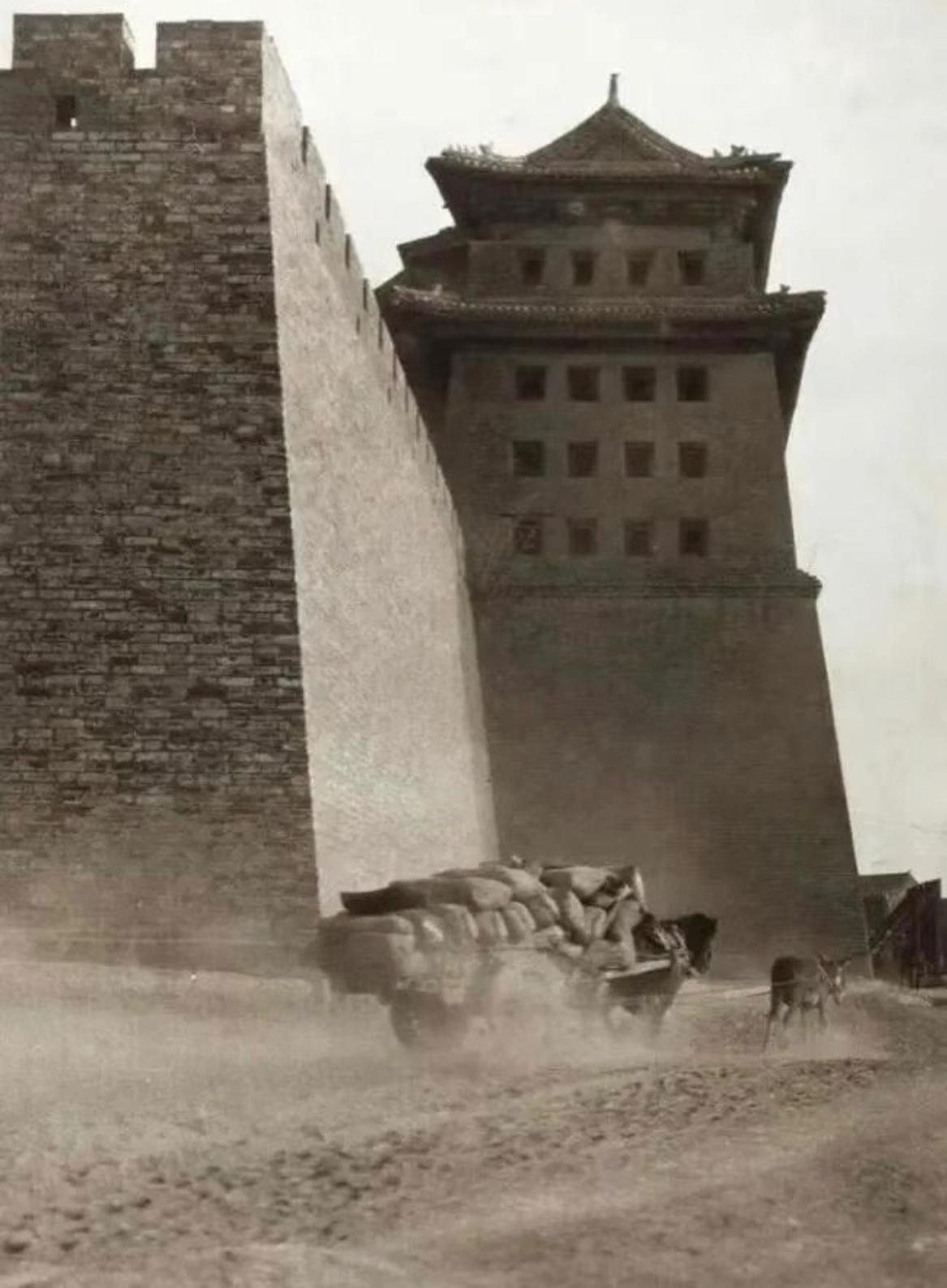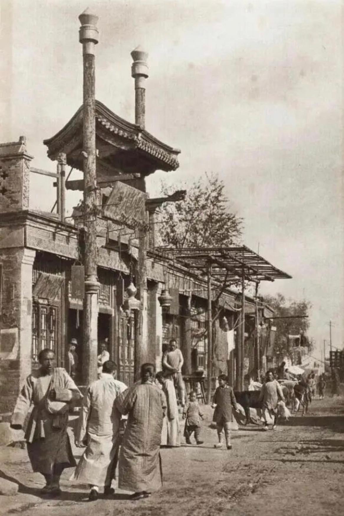 老照片:一百多年前的老北京街道,城墙是宏伟的,古建筑是沧桑而大气的,道路却是灰沙三尺的,百姓也是双目无神的。 古老的清帝国如同迟暮的老人,虽然通过古建筑。可以感受到帝国辉煌的文明,但是道路的破败,百姓的颓废,又深刻无声的诉说着这个帝国已经日暮西山了。 老照片 老北京