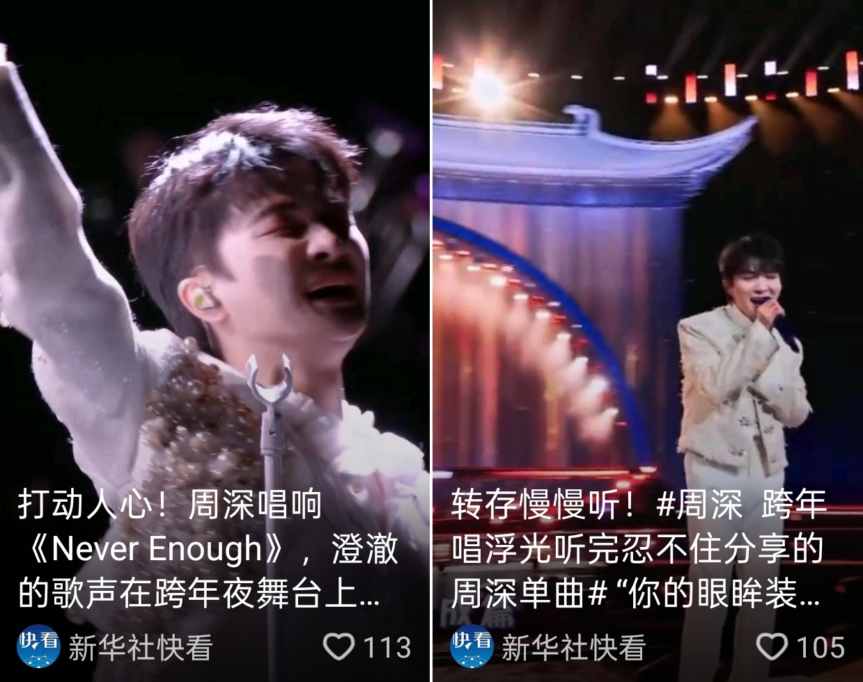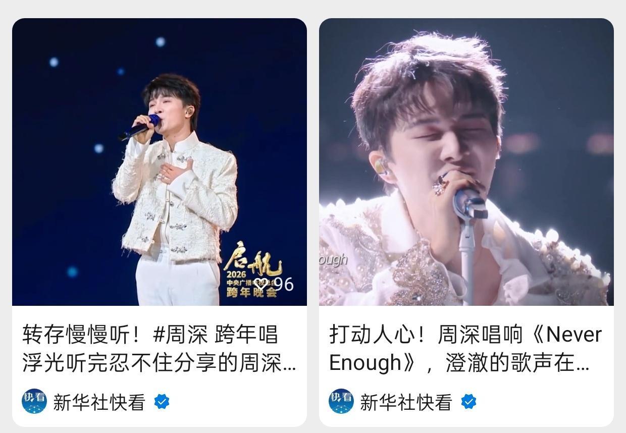 周深 📣 12.31 物料更新 📣【新华社快看】抖🎶、vx视频浩更新深深今天跨晚舞台米子们快来完整观看并多多三连互动安利具体见图