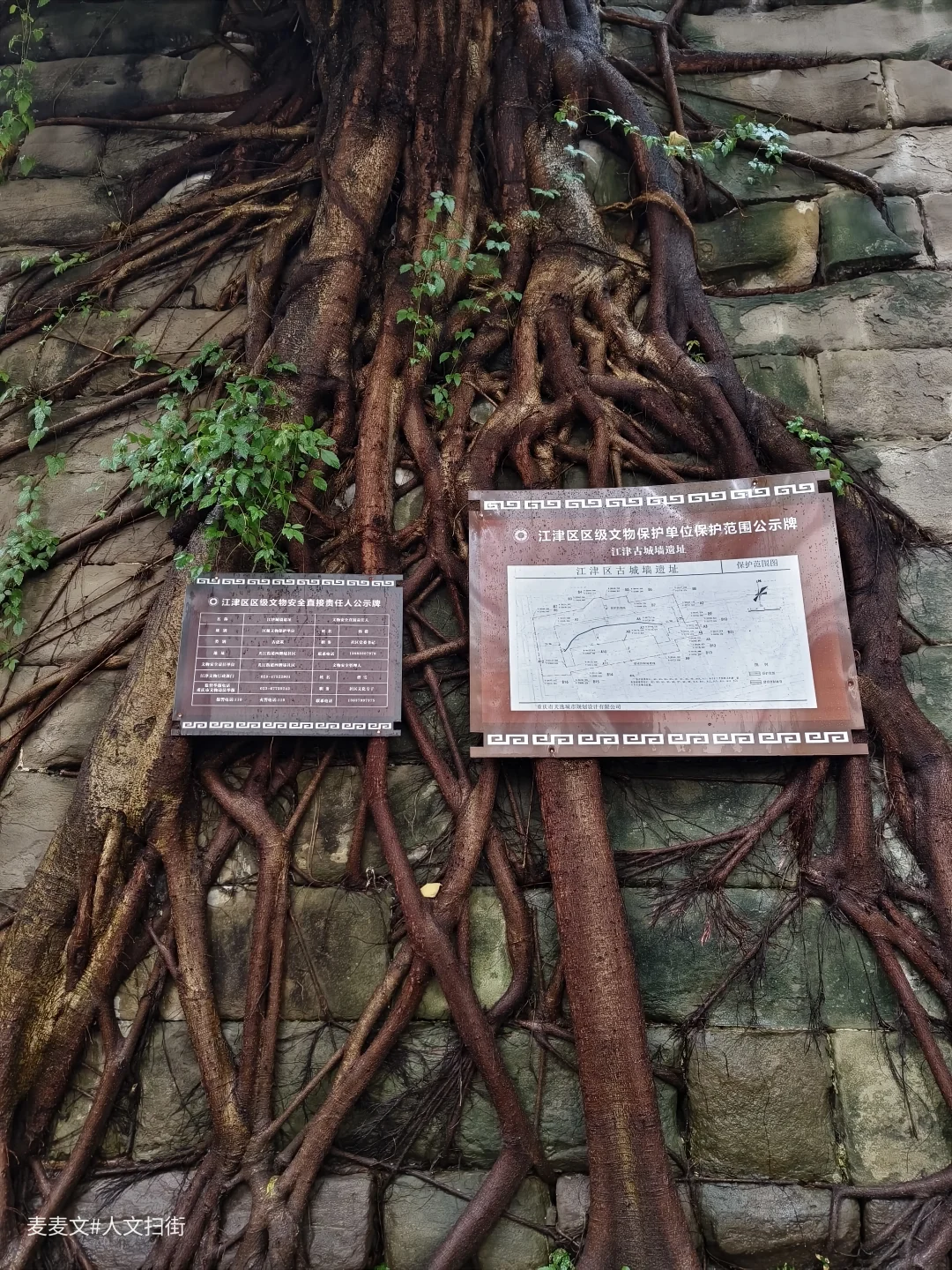 新中国成立后,江津的古城墙逐渐被拆除,城市面貌焕然一新。如今只剩这一段,它坐南向北,始建于明成化八年(1472年)。由北固门起向东延伸约300米,最高处5.8米,所砌单块条石长0.9米、宽0.3米,均采用一横一丁的砌筑法。