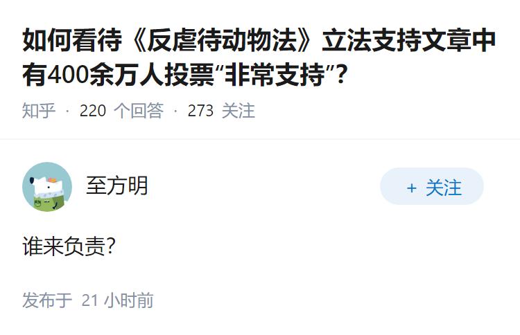 如何看待《反虐待动物法》立法支持文章中有400余万人投票“非常支持”?