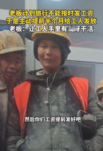 格局打开了!北京一老板计划旅行,不能按时给工人发工资,于是,他主动提出,给工人们提前半个月发工资,本来工人们听到不能按时发工资,都有点郁闷,可听到后半句时,全都露出不可置信的表情,老板表示:让工人手里有钱好干活。网友:这样的老板,谁不愿一直跟随? 老板开了家小厂子,手下十几号工人,工资从来都是到点就发,从没拖过一天。这次的云南旅行计划,他筹备了好一阵子,车票、住宿早就订好了。 可前几天核对日程表的时候,他突然发现不对劲——原定的发薪日,正好是他在外旅行的中途,要是等他回来再发,起码得延迟小半个月。 他知道自己手下的工人,大多是上有老下有小的,每个月工资都有固定用处,要么还房贷、交房租,要么给家里买菜、给老人买药,别说延迟半个月,就算晚个三五天,都可能让人家手忙脚乱。 尤其是现在物价不低,普通家庭大多没多少富余的周转资金,工资晚发一天,家里的事儿就可能卡壳。所以他没多犹豫,当天下午就把所有工人都叫到了办公室。 一开始大家还以为老板是要安排旅行前的收尾活,都规规矩矩地听着。没想到老板一开口就说:“我原定的旅行时间跟发工资的日子撞上了,按原计划走的话,工资没法按时发了。” 这话一落地,现场的气氛立马就沉了下来。有几个工人下意识地皱了皱眉,互相递了个眼神,脸上的郁闷藏都藏不住。 就在大伙心里犯嘀咕、没底的时候,老板话锋一转:“所以我琢磨着,干脆提前半个月给大家发工资,今天下班前,工资肯定都打到你们卡上。” 这话一出口,刚才还一脸郁闷的工人们瞬间就僵住了,眼睛都睁大了,满脸的不可置信,仿佛没听清老板的话。有个年纪稍大的工人忍不住追问了一句:“老板,您是说……提前发?”老 老板笑着点了点头:“提前发,不能让你们因为工资的事儿闹心。你们手里有钱,干活才能安心。” 听老板这么一说,工人们悬着的心彻底放了下来,脸上的郁闷全没了,取而代之的是开心和感动。 有人说这才是真正的大格局老板,把工人的难处放在心上,工人自然愿意拼命干活,这样的老板活该发财。 还有人感慨,对比那些为了点小利就克扣工资、找各种借口延迟发薪的老板,这位老板的举动太戳心了,跟着这样的老板干,再苦再累都踏实。 要知道,对很多基层工人来说,工资不只是收入,更是支撑家庭运转的“定心丸”,在不少人看来,老板延迟发薪是“小事”,工人理应理解,但这位老板却跳出了这种思维,主动站在工人的角度考虑问题,提前发薪的举动不是故作姿态,而是真正把工人的生计放在了心上。 现实中,太多老板把注意力放在“压缩成本、追求短期利益”上,总觉得工人“拿工资干活天经地义”,却忘了工人的安心才是企业稳定发展的根基。 愿更多老板能明白“人心是最大的资产”这个道理,多一份换位思考,多一份体恤关怀。老板体恤员工的难处,员工就会用踏实干活回报老板的信任,这种双向奔赴的关系,才能让企业走得更远。