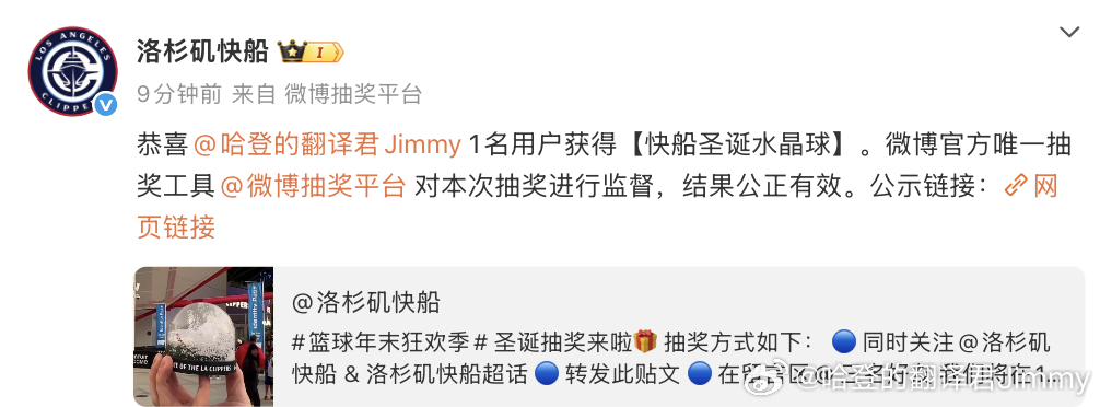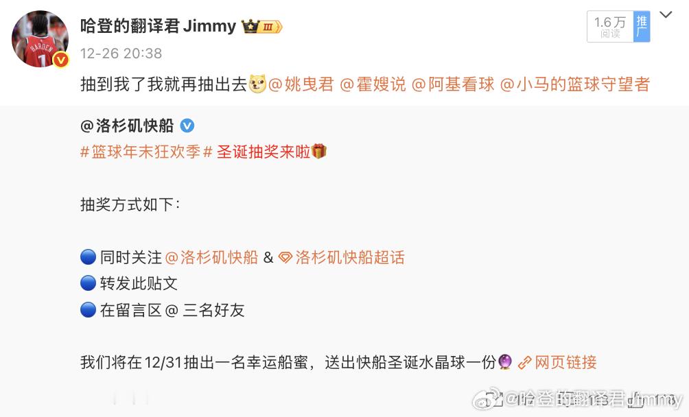 履行承诺哈,抽到我了我就抽给我的粉丝。下场比赛快船赢球我就进行抽奖,不过这次仅限金粉及以上哈~