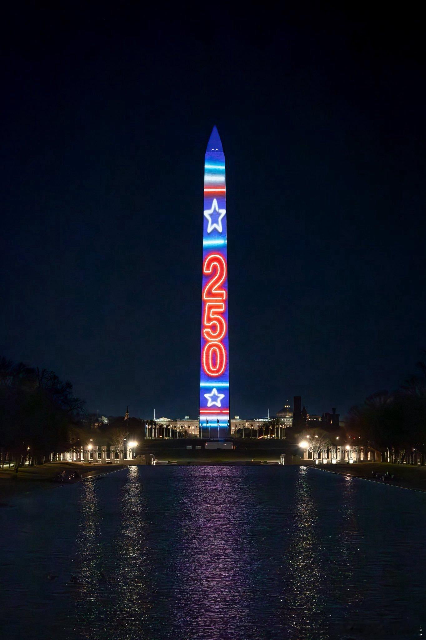 ‼️美国跨年:华盛顿纪念碑已点亮,碑上的“250”寓意美国建国250周年。热点现
