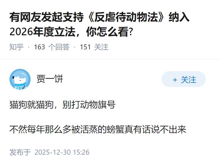 有网友发起支持《反虐待动物法》纳入2026年度立法,你怎么看?