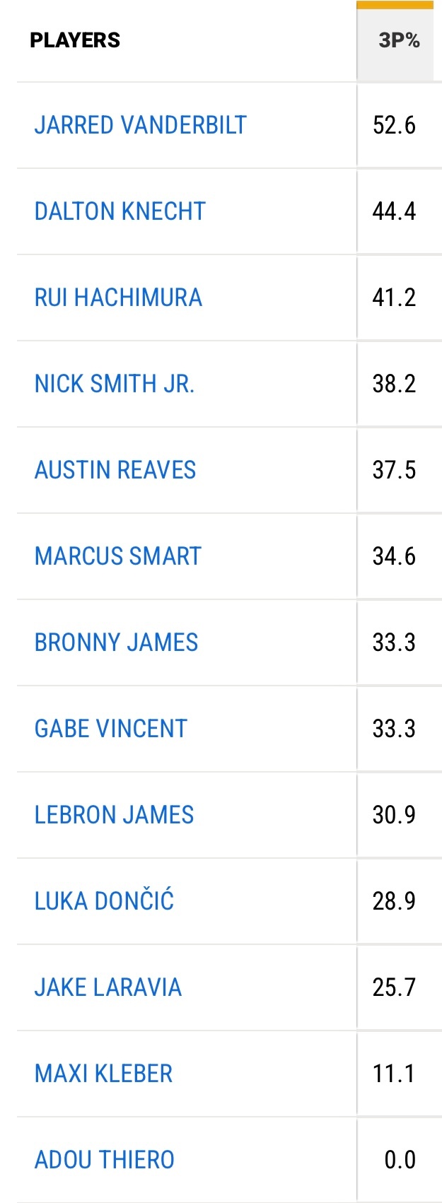 湖人球员12月场均得分、投篮命中率、三分命中率