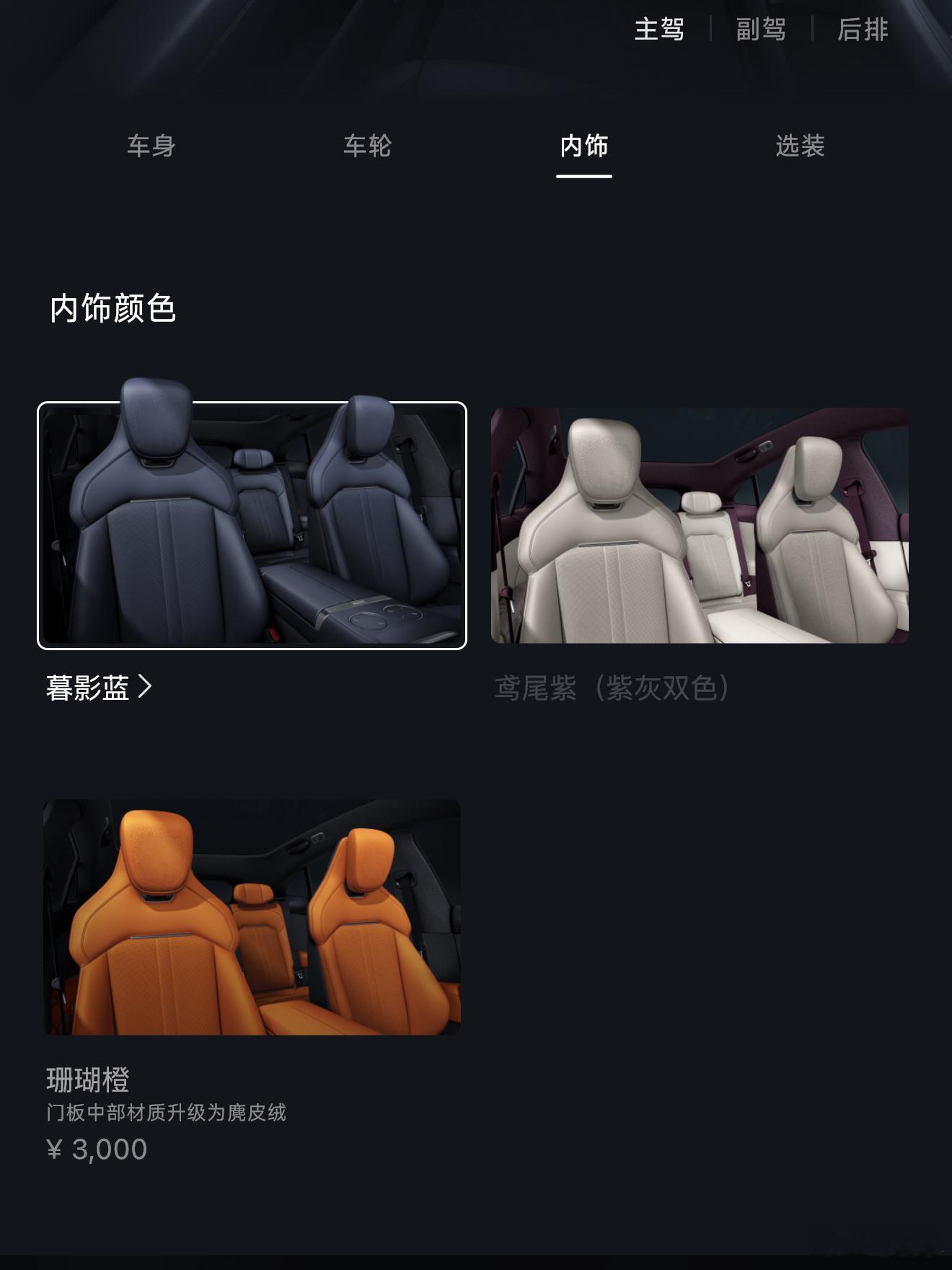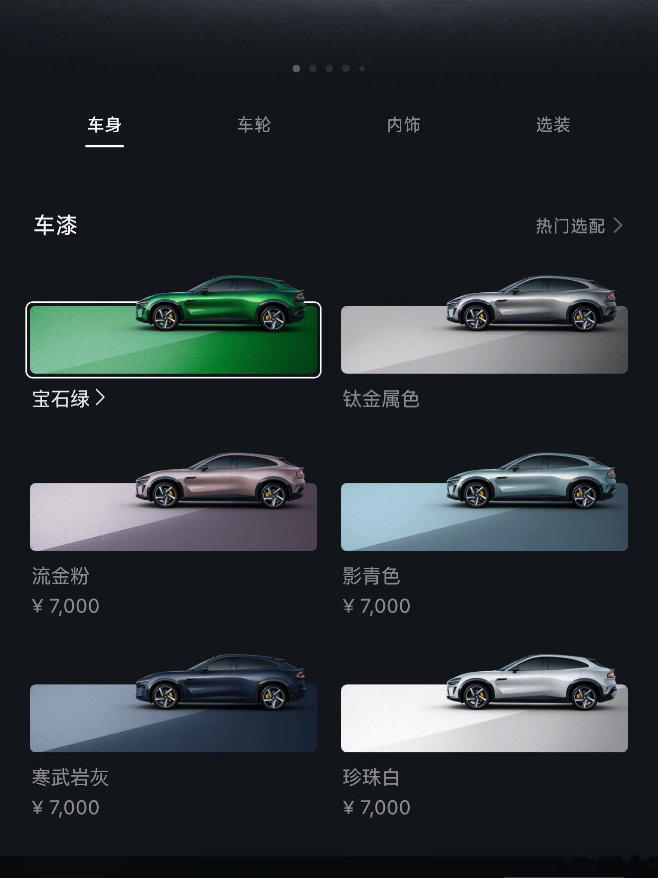 yu7的车漆深海蓝,熔岩橙,丹霞紫,内饰松石灰,红色卡钳都下架了。恭喜买了的车友,成绝版了……小米汽车小米yu7付卷卷爱粟