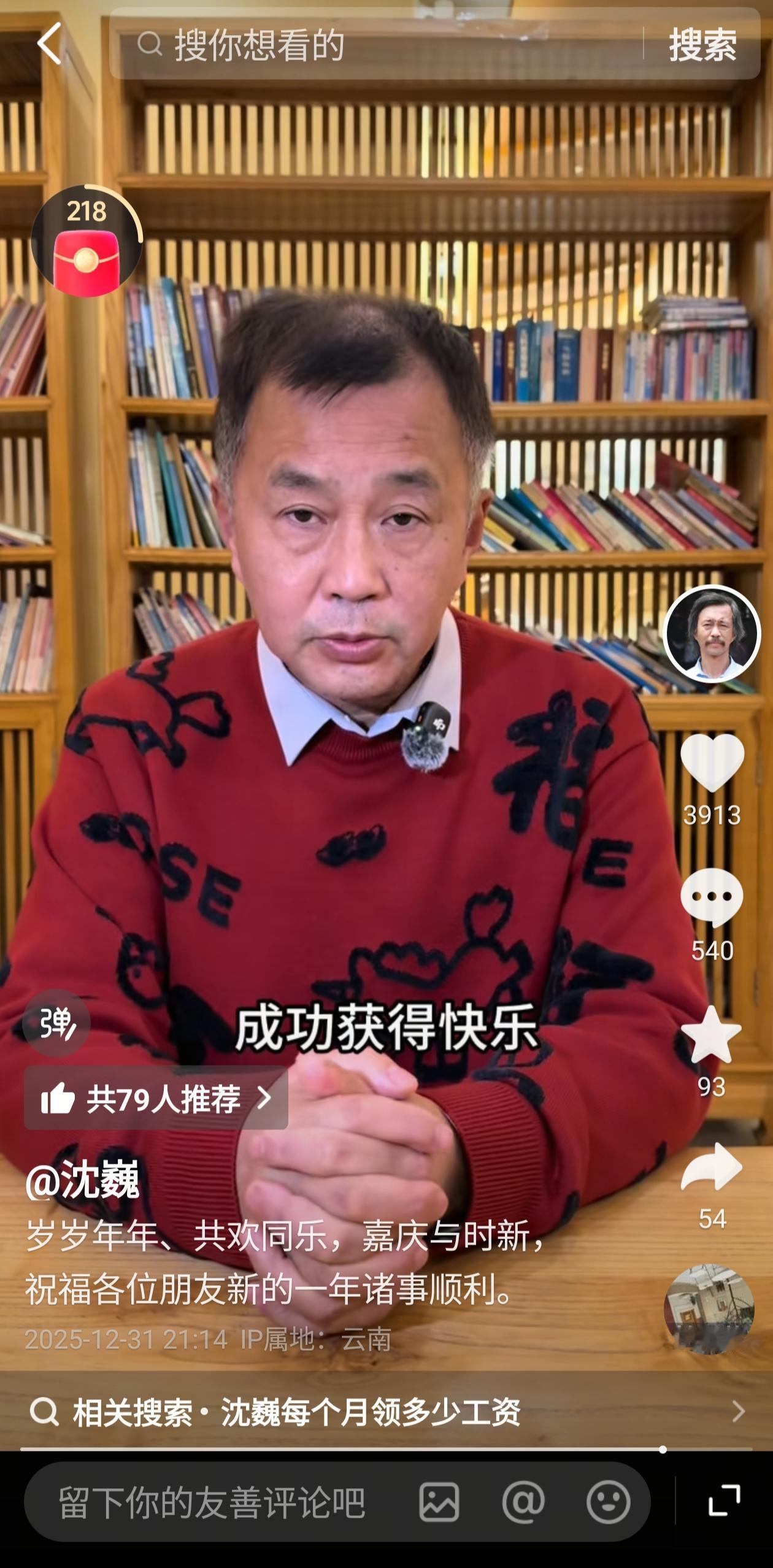 沈巍用自己的账号发新年祝福,穿的很喜庆,他首先感谢粉丝六年来对他的厚爱,然后祝大