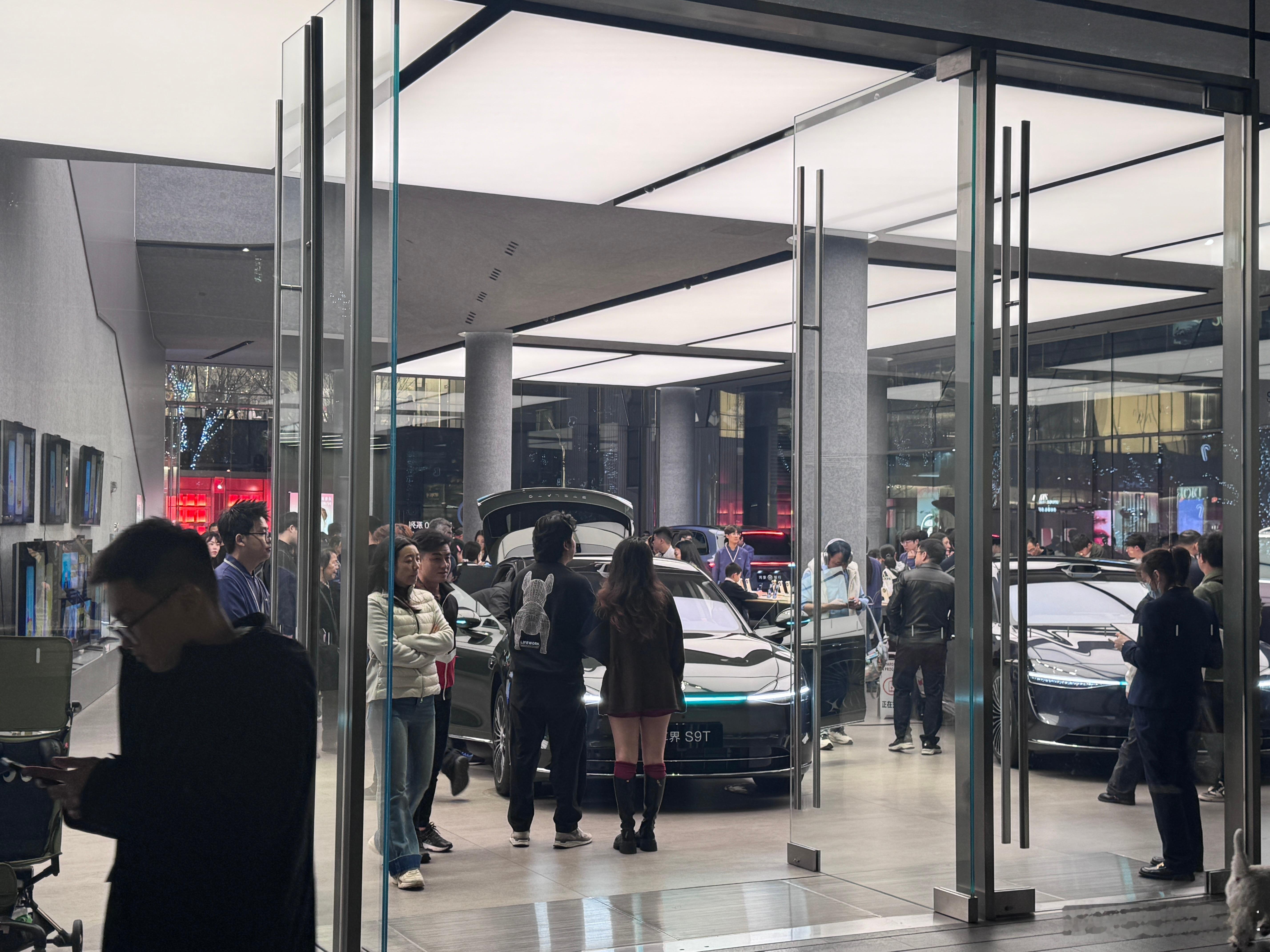 路过一家华为旗舰店,里面看车的人真的是人山人海呀!在广东,开华为是不是非常有排面呀 深圳·华润城万象天地