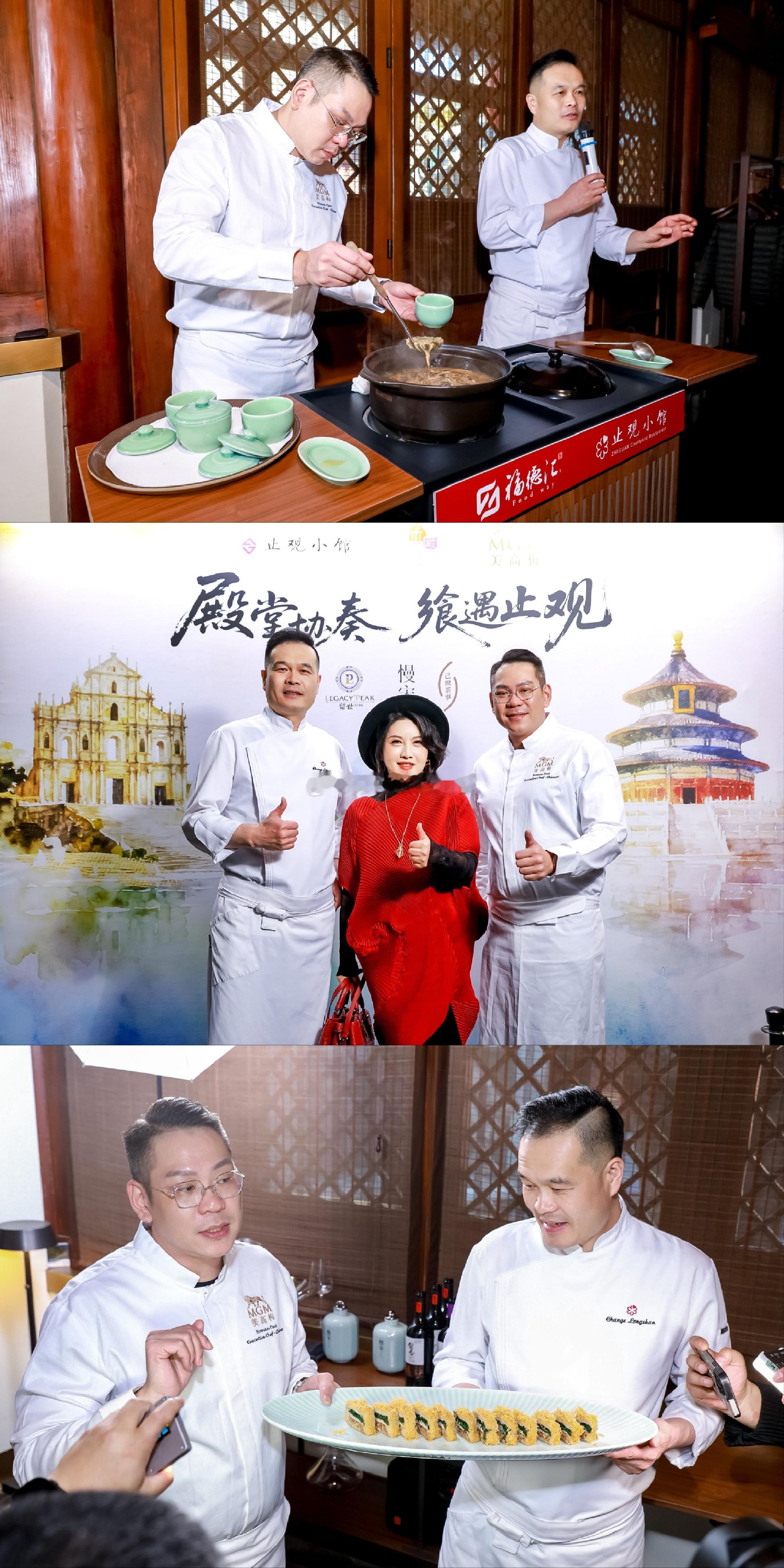 2025尾稍的岁序阑珊,因「金殿堂X止观小馆」的四手联弹,酿出一阕舌尖上的风流雅韵。澳门黑珍珠主厨徐伟豪,携着岭南的清婉风骨踏浪而来;止观小馆的米其林名厨常龙山,裹着东北的豪迈襟怀千里赴约。这一场跨越山海的味觉私语,从推扉入座的那一刻起,便注定了惊艳,注定了难忘。那「殿堂稻田蟹肉盏」,原是盘锦稻田里爬出来的灵物,经粤菜的清鲜妙手轻轻点化,蟹肉的甜便如江南的春雨,密密地沁入心脾,纯粹得叫人忘了尘世喧嚣。「黄酒渤海湾双鲜」更是一笔天成的妙意,丹东黄蚬肉脆生生咬下,似有海风拂面;辣酒花螺浸着醇厚酒香,每一丝肌理都裹着岁月的温软。最是那脱胎于太史蛇羹的「港式草原羊肉汤羹」,叫人一见倾心。内蒙羊尾尖的嫩肉,熬成浓得化不开的醇鲜,漫着草原的奶香,悠悠荡荡;而那切得如丝如缕的柠檬叶,恰是点睛的神来之笔,守得住古法的韵致,又撩拨出新潮的滋味。主菜登场,方知何为人间至味。「清炖红蘑崩沙腩」,是长白山脉的红蘑,邂逅了粤菜清炖的温柔,牛腩软烂得恰到好处,汤汁吸尽山珍的灵气,鲜而不腻,是食材本味的极致绽放。「酥炸荔浦香芋盘锦稻田鸭」,更是创意的极致。盘锦湿地的稻田鸭,经十余种香料慢煨三时,裹上荔浦芋泥炸得金红透亮,外皮香脆,芋泥绵软,鸭肉香浓,甜咸交织的层次,在舌尖层层铺展,直教人拍案叫绝。两位主厨的招牌之作,亦是席间的点睛亮色。常师傅的「辽参黑豆腐」,醇厚入味,是东北菜的扎实风骨;「锅包肉・黄鱼」酸甜适口,藏着北国的烟火温情。豪哥的「当红炸子鸡」,皮脆肉嫩,是岭南菜的精致讲究,一筷入口,便觉岭南的温婉风情扑面而来。佐餐的饮品,亦是万般相宜。慢宋黄酒,呼应着食材的本真鲜味;留世酒庄的葡萄酒,提升着风味的层次;己悦茶事的定制茶饮,适配着百般珍馐。我的年度美味清单逛吃北京240小时 北京·止观小馆·辽河口渔家菜(王府井店)