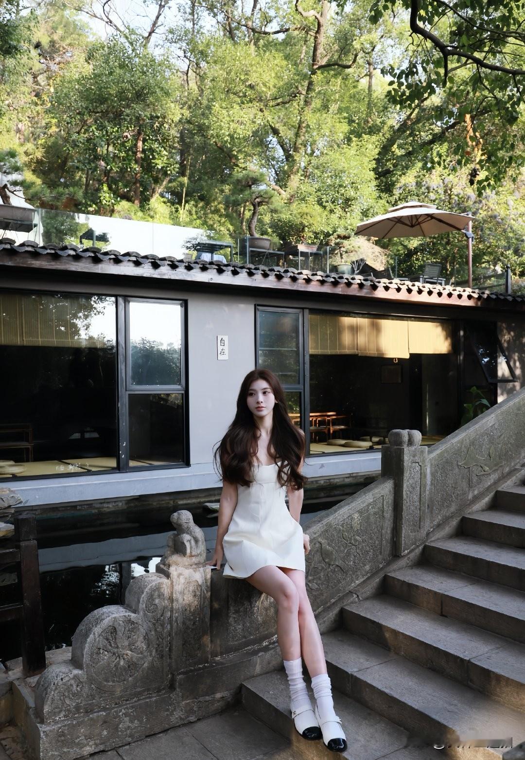 优雅白裙,漫步古风庭院,感受时光静好。