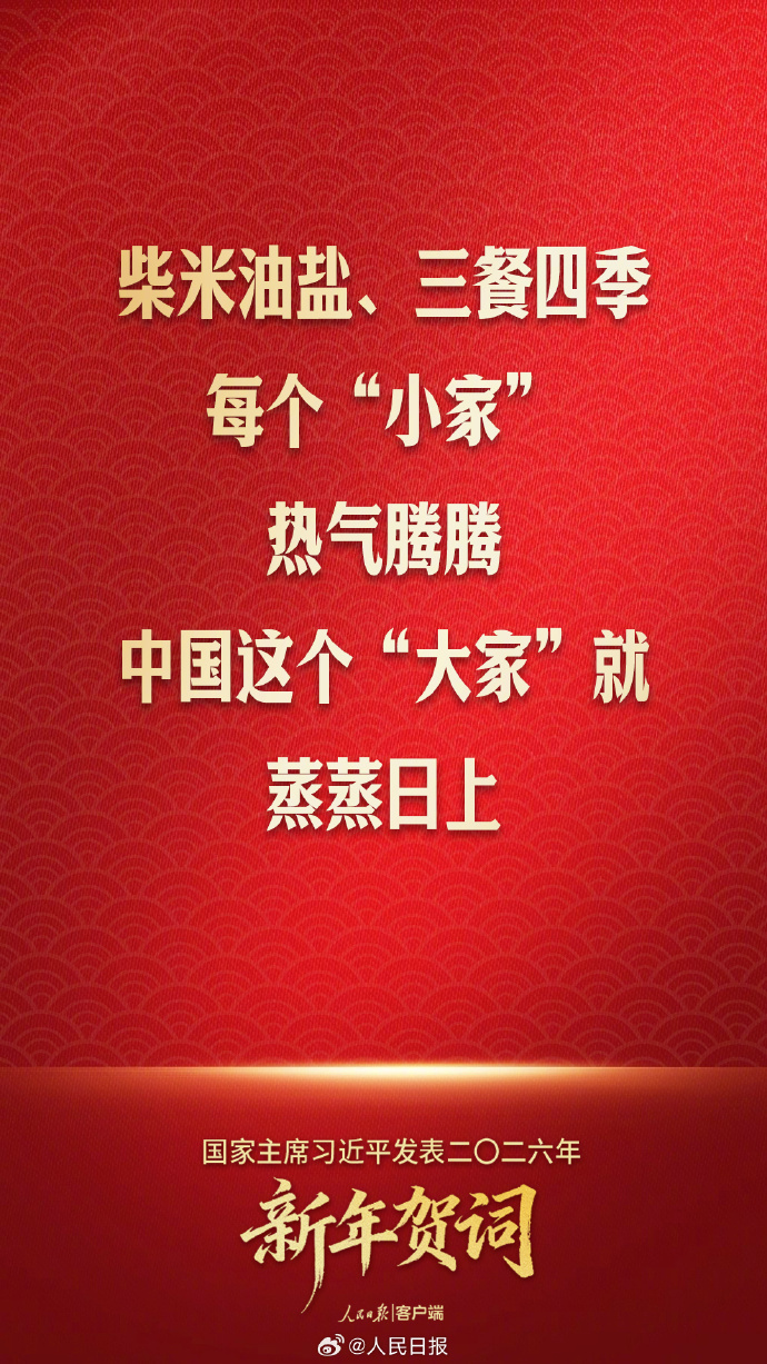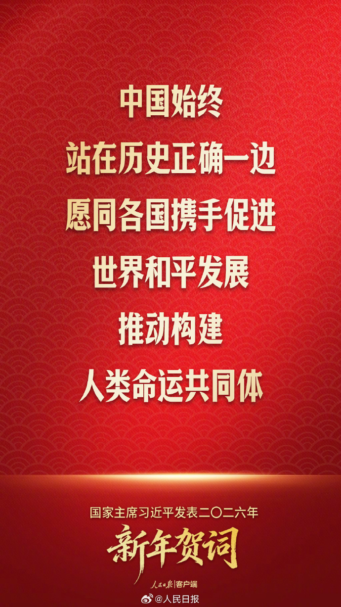 【转发收藏!#2026年新年贺词金句#来了】#新年贺词里这些话暖心又提气#↓↓#2026年新年贺词#(人民日报)