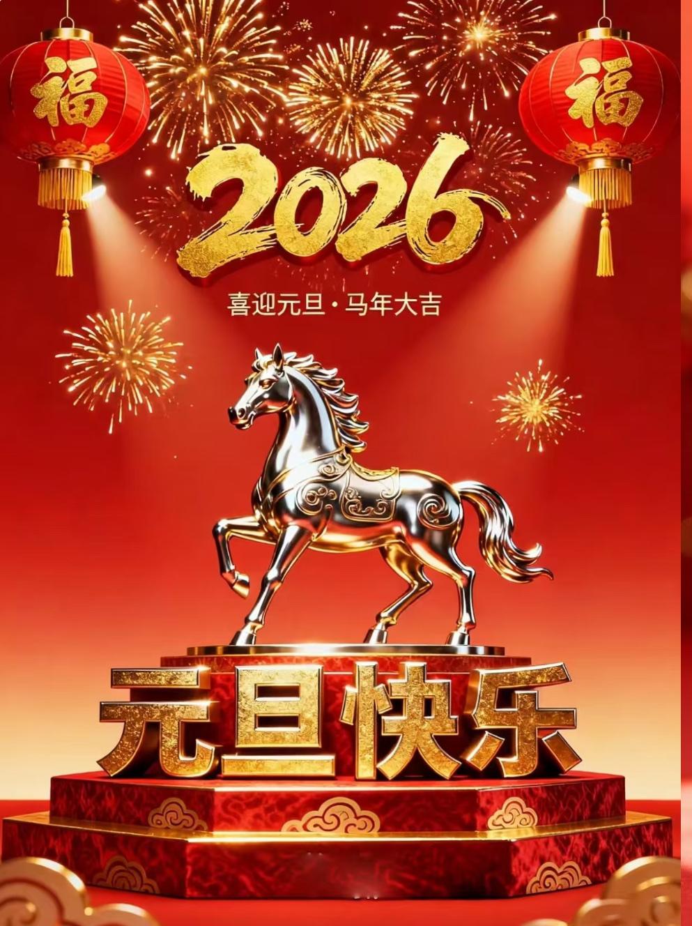 金马贺岁 2026年福运满满 "春风得意马蹄疾,一日看尽长安花。" 一元复始万象新, 愿新岁的你被温柔以待, 日子如锦绣,岁岁有欢歌! 以崭新的姿态,奔赴更美好的未来, 让每一个平凡的日子都闪着光, 让新年的每一份美好都胜过往昔! 事业顺利一一马到成功 家人合欢一一马上甜蜜 长辈安康一一马上硬朗 学业进步一一马上登科 财运亨通一一马上有财 一句话:马上啥都有! 两件事:健康又自由! 三愿:路上有伴,梦里有糖,眼里有光!