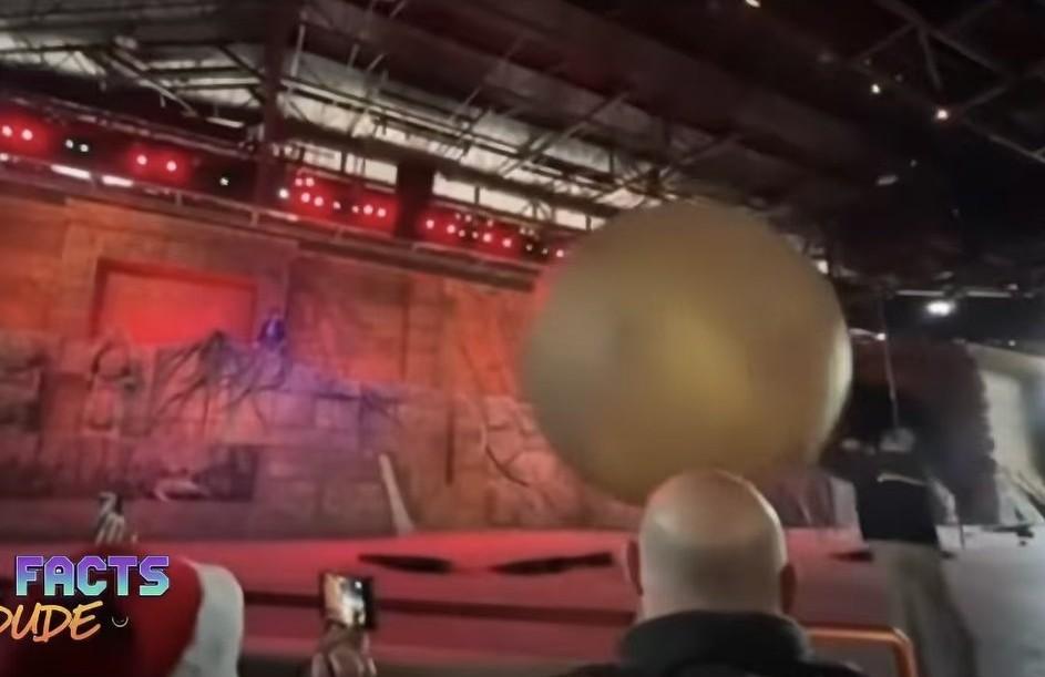 如果不是工作人员膛臂挡球,后面观众可就惨了。 某地迪士尼的印第安纳琼斯表演,大球正常情况应该顺着坡滚下。 不知什么原因,球遇到阻力,路线发生变化,直接往台下滚过来。 在场工作人员想挡一下,可惜想法虽好,实力不够,直接被球掀翻倒地。 随后更多人上来急救,球也被妥善拨拉到一旁。
