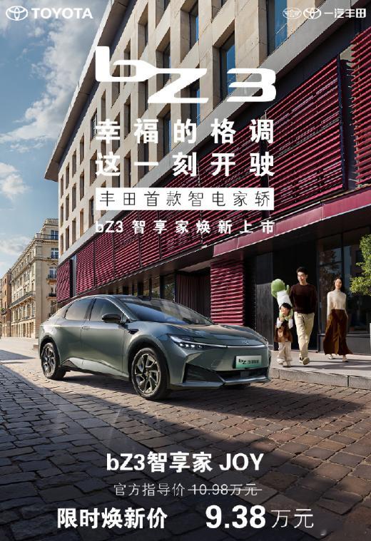 一汽丰田bZ3 智享家正式焕新上市,共推出 2 款车型,限时焕新价 9.38万-10.38 万元。