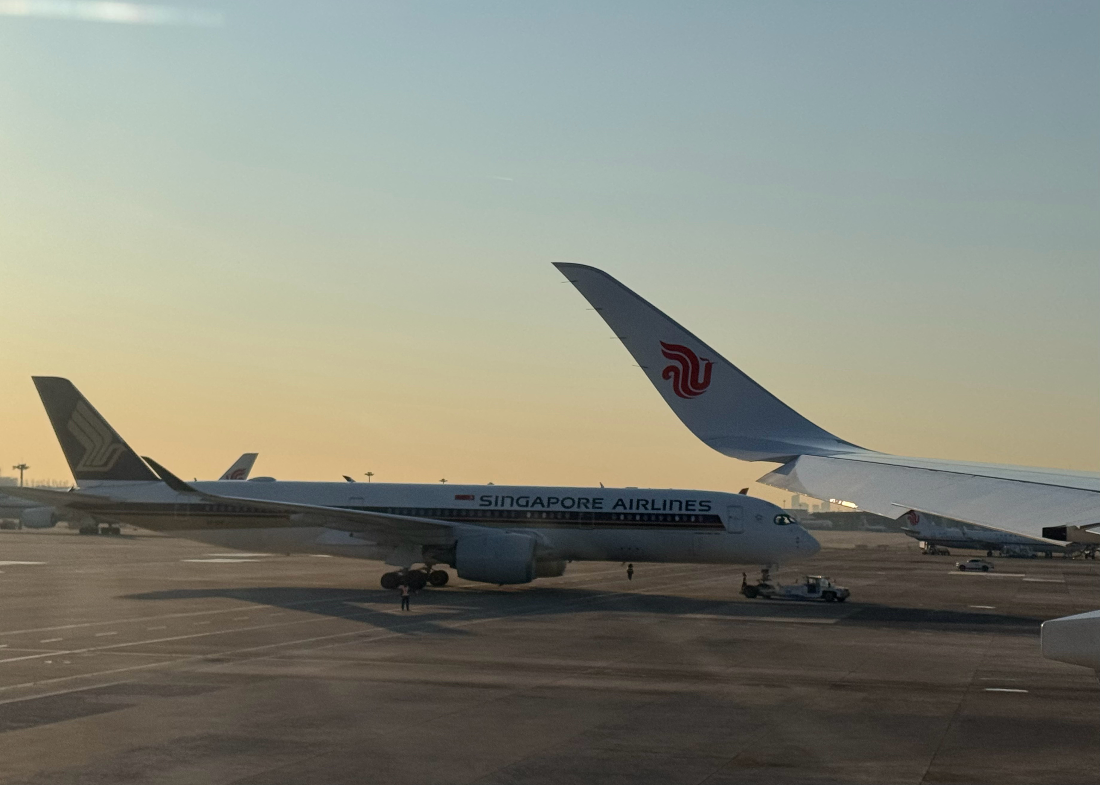 俩A350停一块 同为星空联盟 同为载旗航空还真没坐过🇸🇬新加坡航空航班听新航的高仓位不是一般的豪