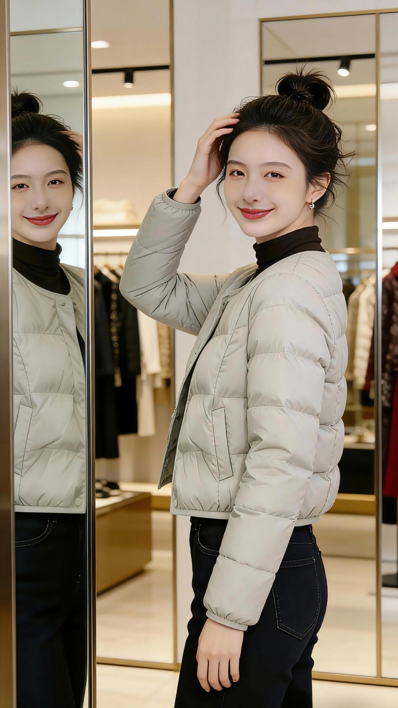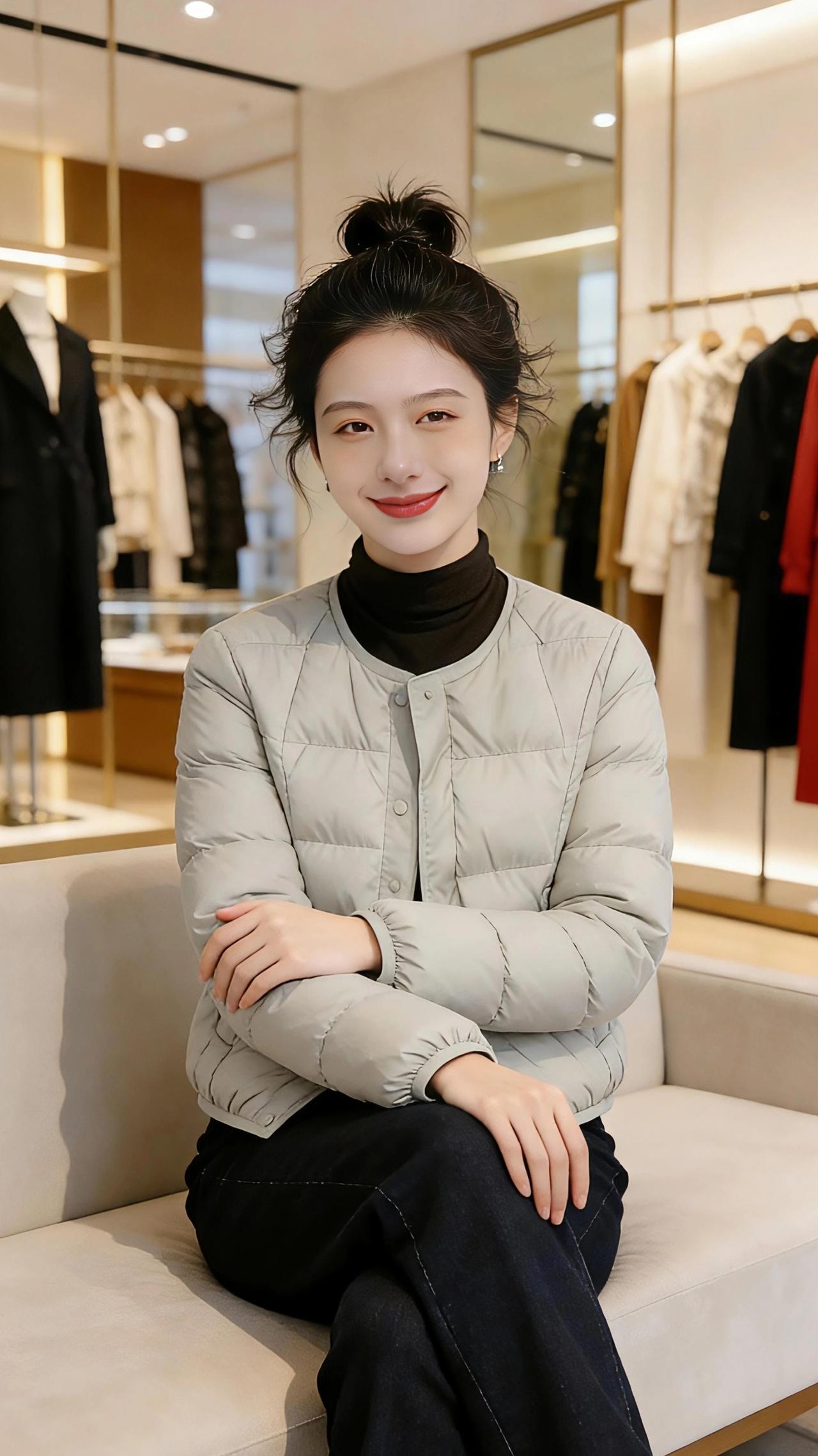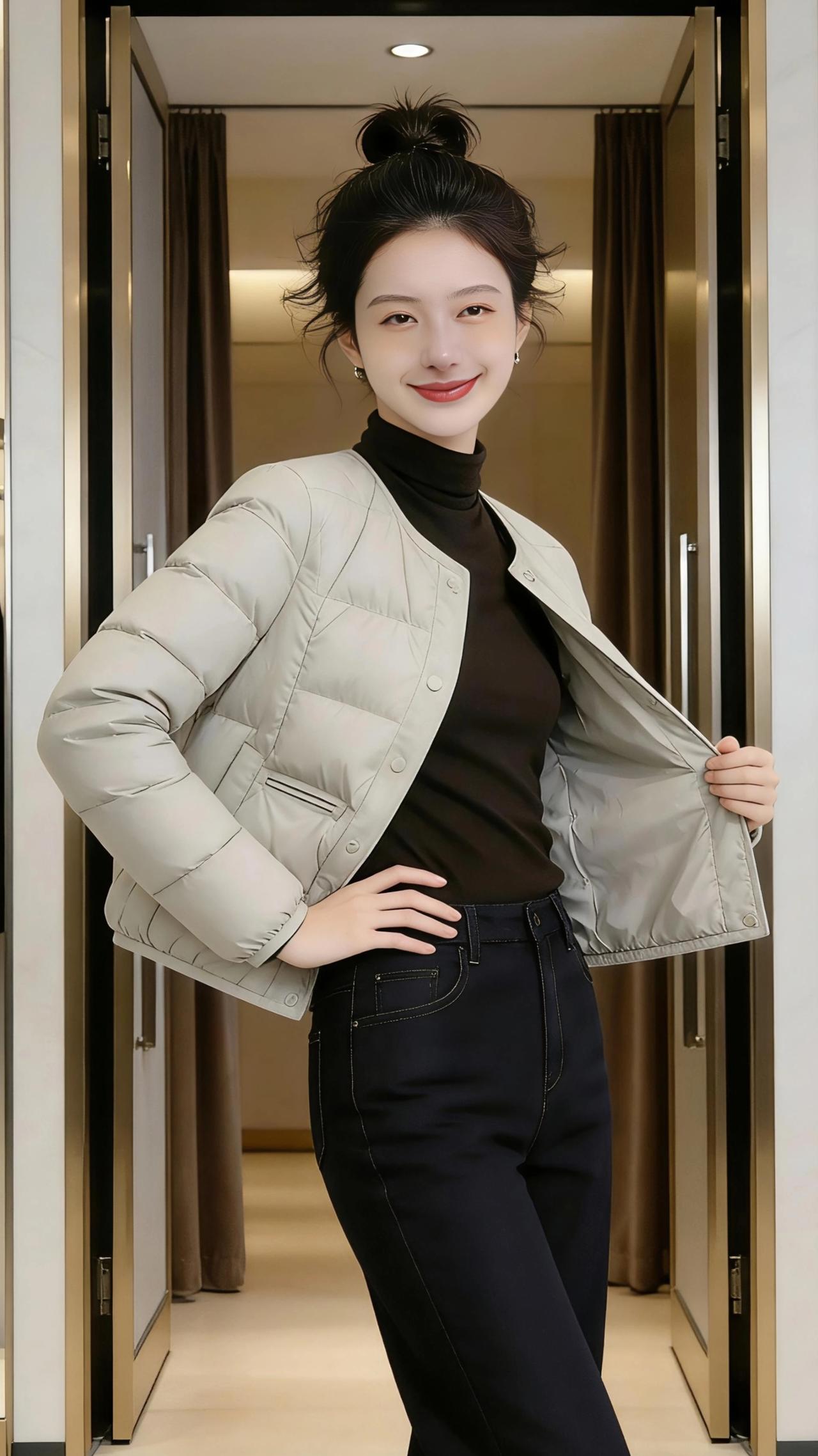 暖衣轻章 浅灰色的短款羽绒衣,像一片揉软的云落在肩头,将初冬的凉意轻轻隔绝。在轻奢咖啡店的暖光里,指尖捧着温热的拿铁,瓷杯的温度顺着掌心漫开,与衣料的柔软撞了个满怀。金属吊灯的光晕落在衣摆的菱格纹上,漾出细碎的温柔,窗外的街景成了模糊的背景,唯有这一方暖隅,藏着恰到好处的惬意。 转身踏入高级服装店,镜面墙映出衣身的利落线条,抬手轻触发髻的瞬间,衣料的挺括与柔软交织,勾勒出随性的美感。坐在浅米色的沙发上,双臂轻叠,羽绒衣的浅灰与店内的鎏金装饰相映,冷调的衣色竟也揉进了几分精致的暖。又或是站在试衣间门前,手捏衣摆轻轻拉开,衣内的暗纹若隐若现,像藏了一场未说出口的温柔,对着镜头笑时,衣料的轻暖,竟比周遭的奢华陈设更动人。 这一件浅灰羽绒衣,似是将冬日的温柔都裹了进来,在咖啡店的慵懒里,在服装店的精致中,都成了最合时宜的点缀,让每一个瞬间,都温软得恰到好处。高级感穿搭 小个子穿搭 冬季穿搭 新年穿搭
