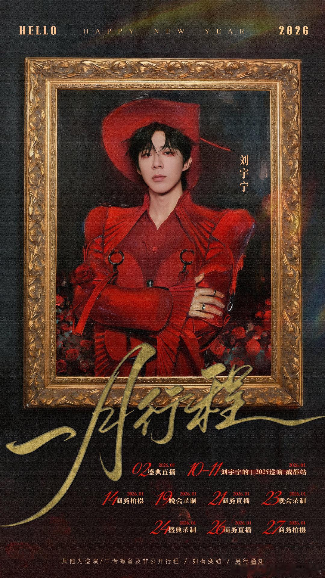 刘宇宁的一月行程图刘宇宁的一月行程图来啦