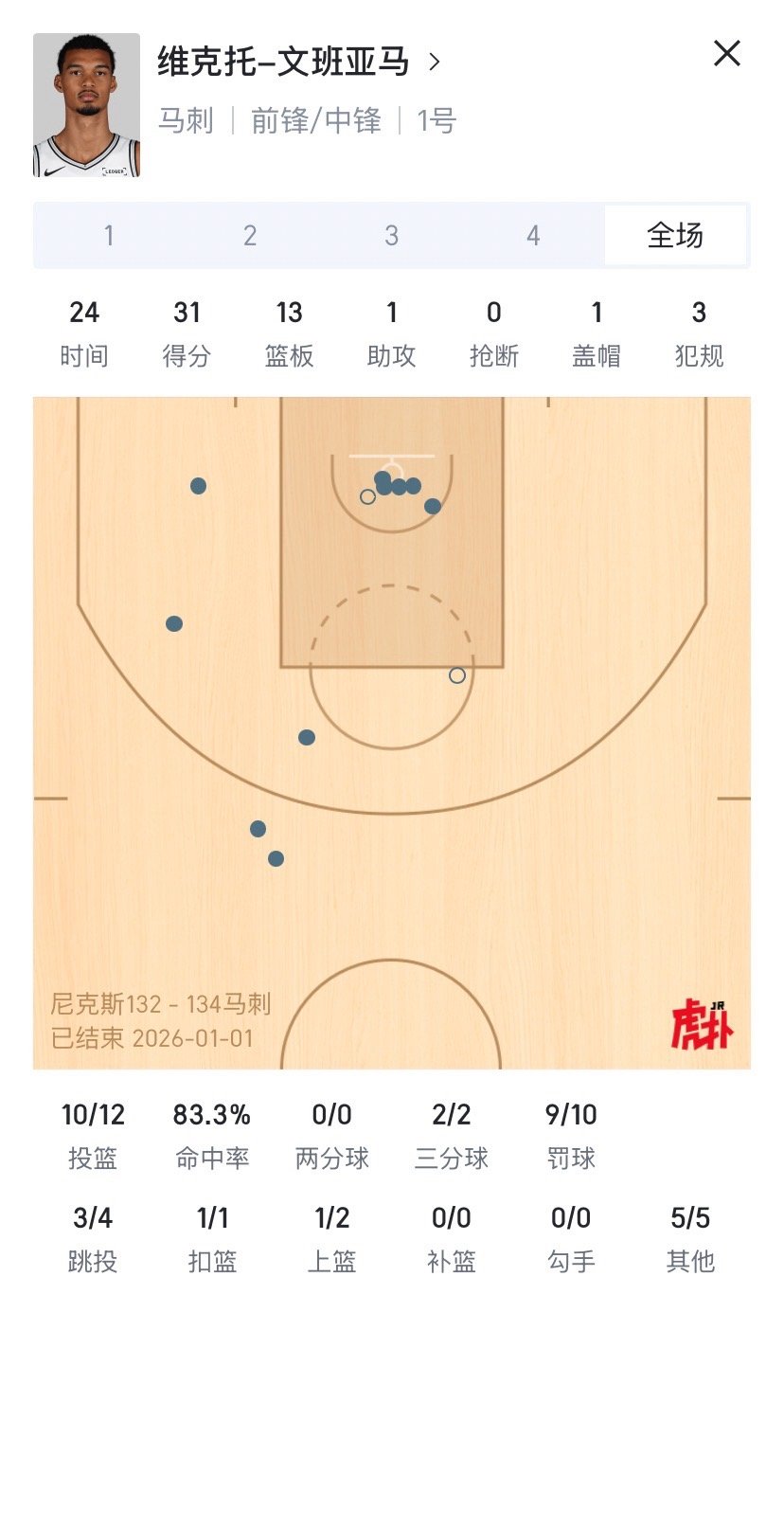 布朗森底角远投命中,但是比赛结束了!马刺在文班伤退,最多落后19分的情况下!新年夜击败了尼克斯!完成对杯赛决赛的复仇!终结了两连败!!!尚帕尼,36分个人新高,11记三分队史新高!在这个全队一共投进14个三分的夜晚,可以说一人成军,独自扛起了全队【射手】这块!今天的赛后战鼓理所当然,有他敲响!!文班伤退之前就已经23分钟砍下30+10,“我们欠他们一个,也欠自己一个”,他不是空口说说,可以看出文班今天的欲望和努力!福克斯,KJ,还是那么稳定,无须多言。2025最后一场,圆满结束!!一起迎接更猛烈的2026吧!!!GSG!!!马刺