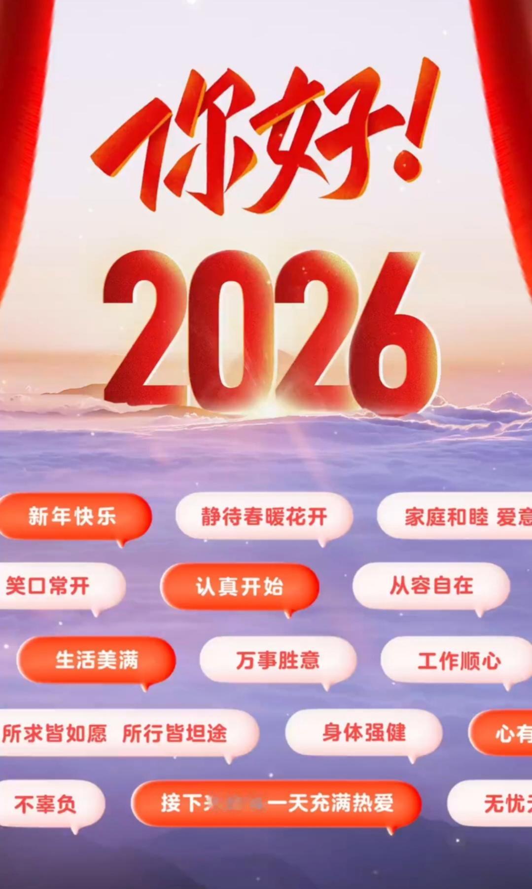 2026年已悄然而至,新的一年,你准备好如何书写自己的崭新篇章了吗? 随着2025年的钟声渐渐远去,我们满怀期待地迎来了2026年。这一年,仿佛一张白纸,等待着我们用行动和梦想去描绘出五彩斑斓的画卷。新的一年,总是充满了无限的可能和机遇,无论是职场上的晋升,还是生活中的小确幸,都值得我们期待和追求。回顾过去的一年,我们或许有过欢笑,也有过泪水,但那些都已成为过去,重要的是,我们要从过去的经历中汲取力量,勇敢地迈向未来。新的一年,工作上或许会有新的挑战和机遇,让我们以更加饱满的热情去迎接它们,不断提升自己,实现自我价值。生活中,也让我们珍惜每一个与家人、朋友相聚的时刻,共同创造更多美好的回忆。 2026年,让我们携手并进,勇往直前,共同创造属于我们的辉煌未来!你有什么新年愿望或计划吗?快来评论区分享,让我们一起为梦想加油!迈入2026年 迈进2026年 2026愿景