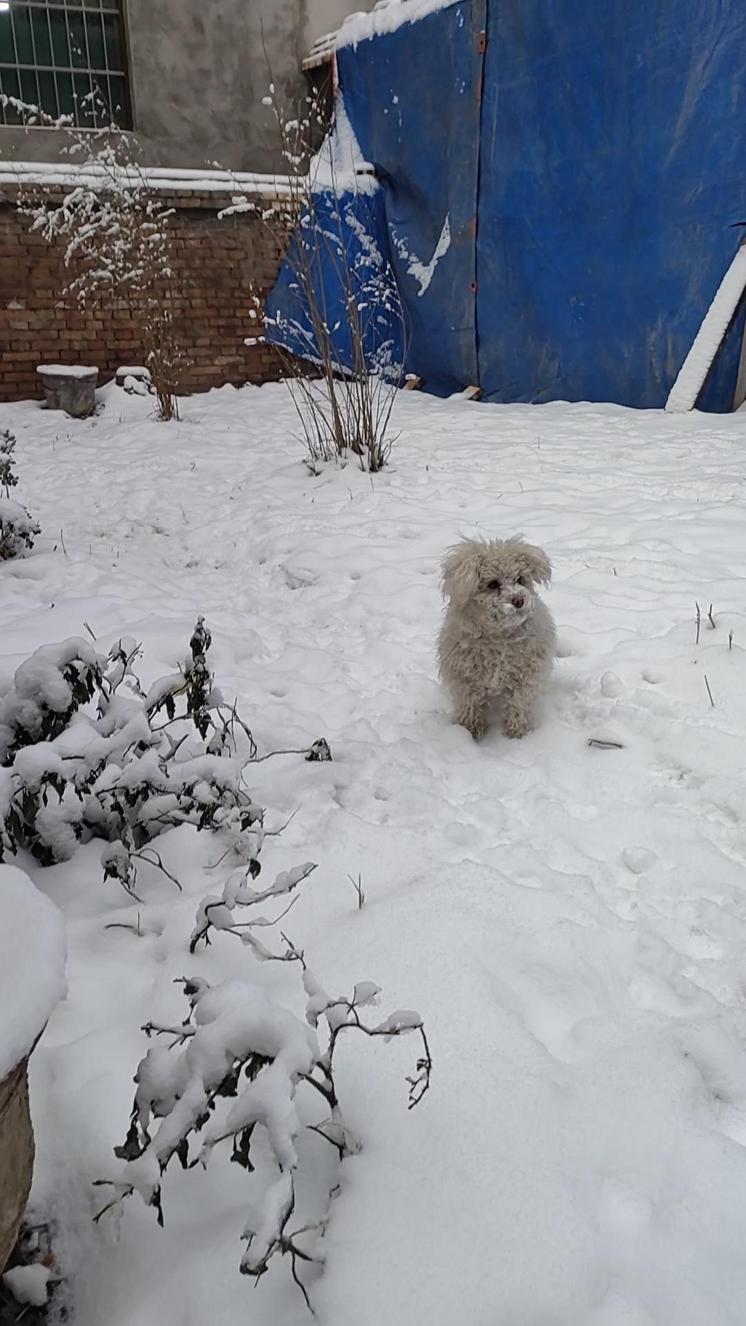 ❄️雪把庭院铺成素笺,小狗是坠在留白里的蓬松句点,连枝桠都在寂静里,等着它踩出温柔的诗行。 ✨银白的世界里,小狗蜷成一团暖绒,旧枝桠驮着雪,和它一起把冬的清冽,捂成了掌心的温度。 🐾雪粒落在卷毛上,小狗望着蓝布帘后的光阴,整个院子的寂静,都在它眸子里漾成了绵密的冬意。