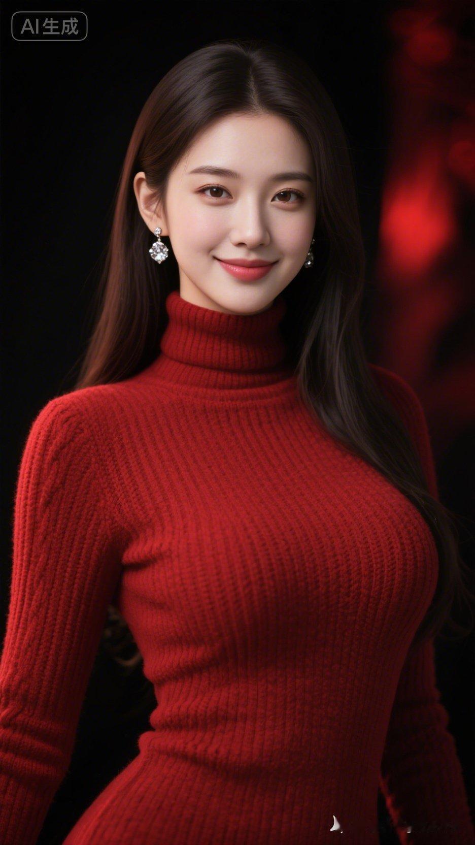 红衣少女,甜美笑容,AI生成,梦幻般的美!