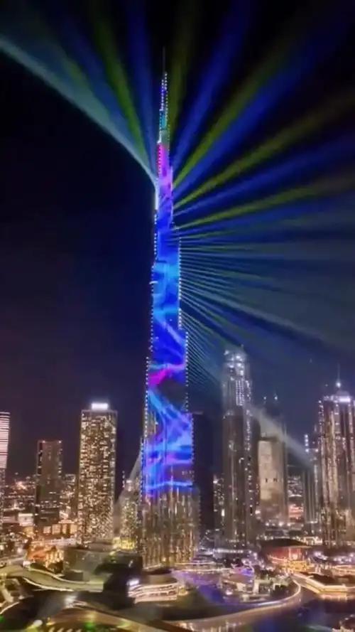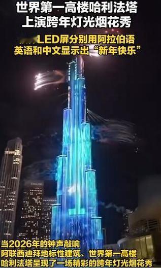 当2026年钟声敲响,世界第一高楼哈利法塔上演跨年灯光烟花秀。828米的楼体LED屏用阿拉伯语、英语和中文显示“新年快乐”,灯光、烟花、无人机表演融合,配合3D光影,震撼全场,为全球观众献上了一场视觉盛宴。哈利法塔风景 哈利法塔豪宅