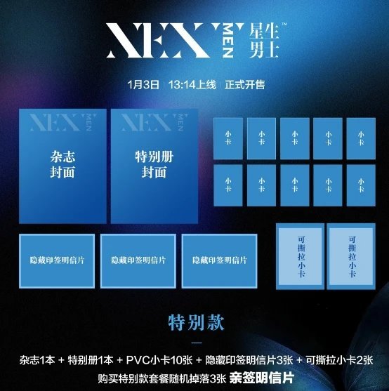 星生男士共两版:1️⃣特别版(💰99);2️⃣基础版(💰45)会随机掉落亲笔签名,记得1月3日13:14去加购呀~