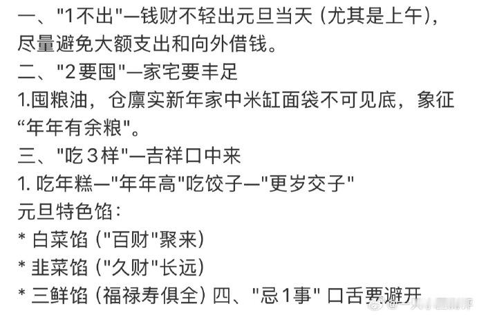 原来新年第一天有这么多讲究 谁懂原来新年的第一天还有这么多的讲究啊,快来说说你们那的信念第一天有什么说法吗,新的一年还是快乐健康最重要,别忘了新的一年爱你老己呀~