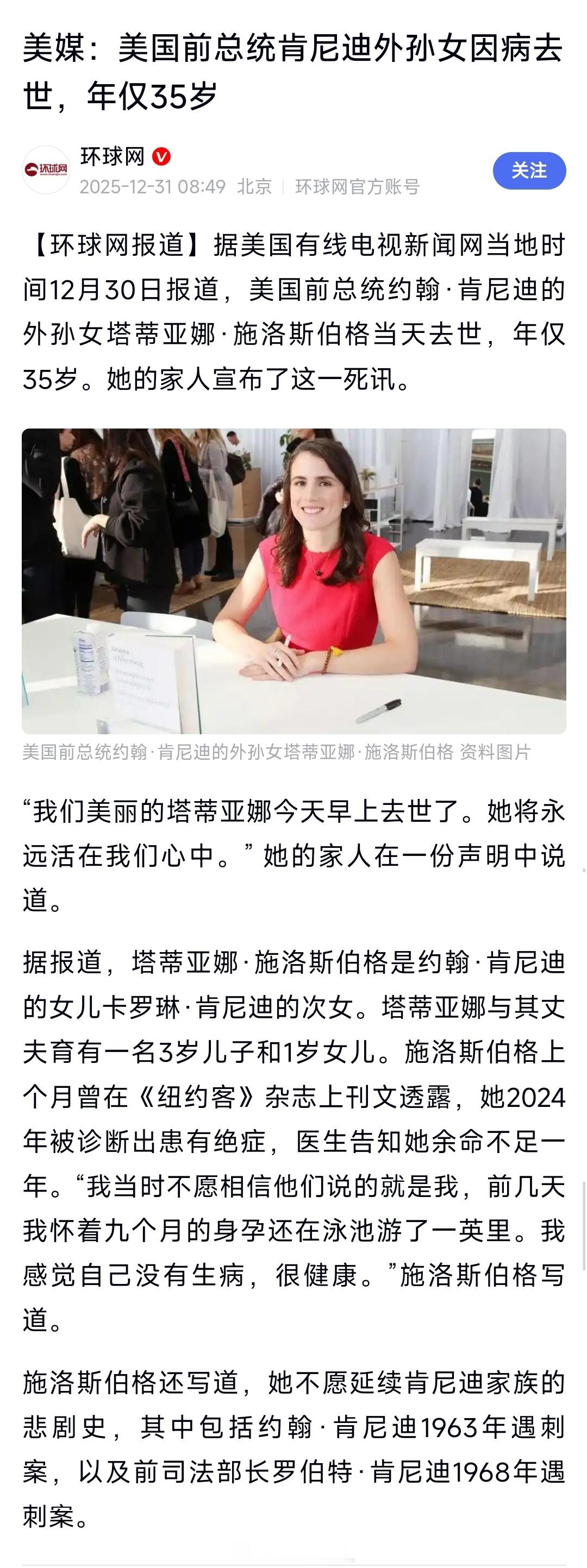 美媒:美国前总统肯尼迪外孙女因病去世,年仅35岁!