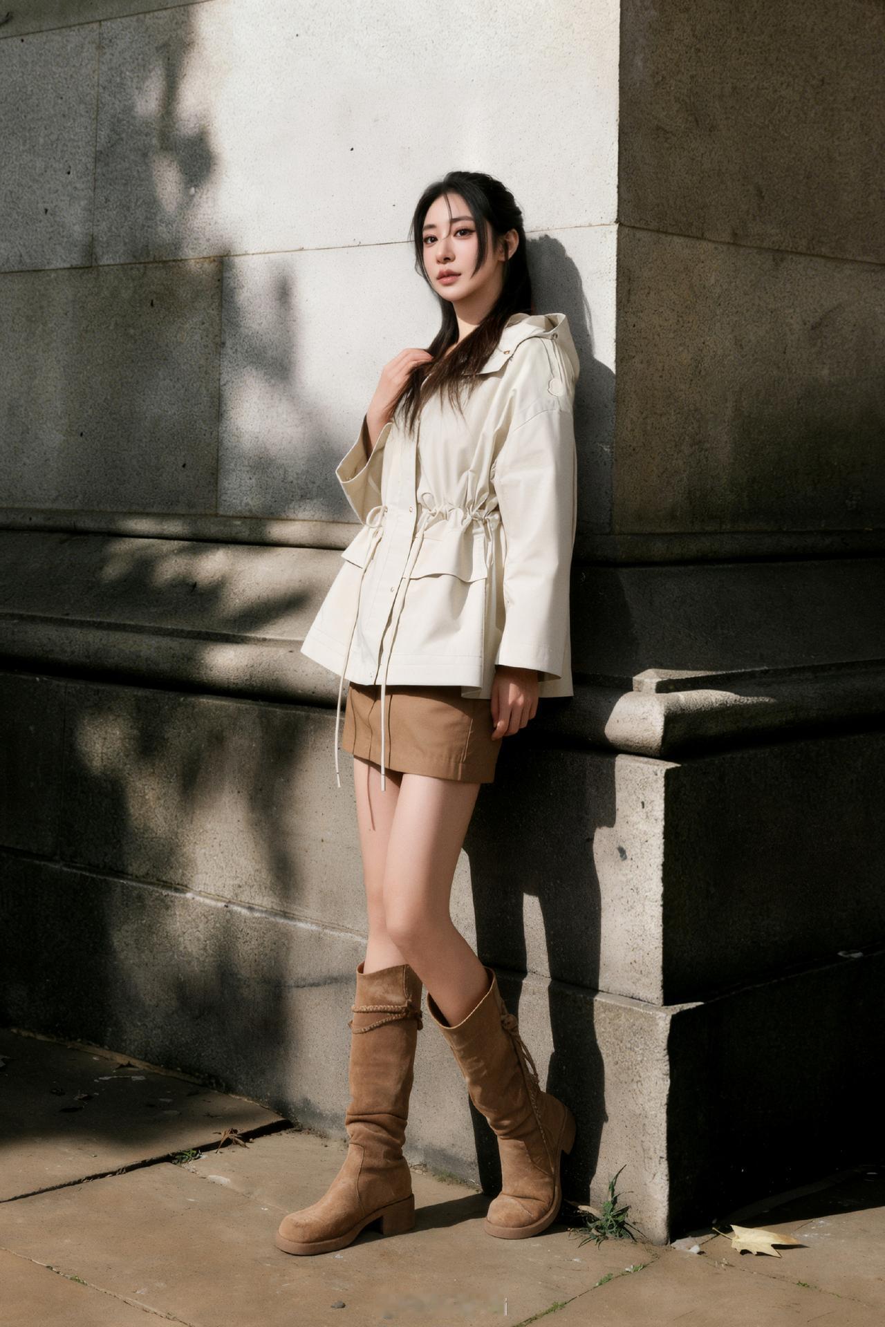 这套穿搭是松弛甜酷的冬日轻羽绒休闲风,把保暖舒适和青春活力结合得很自然。浅卡其宽