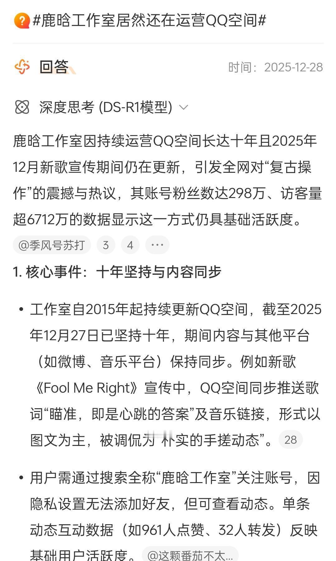 鹿晗工作室还在运营QQ空间!在全网都卷微博抖音的年代,鹿晗工作室依旧坚守QQ空间,老艺术家❗