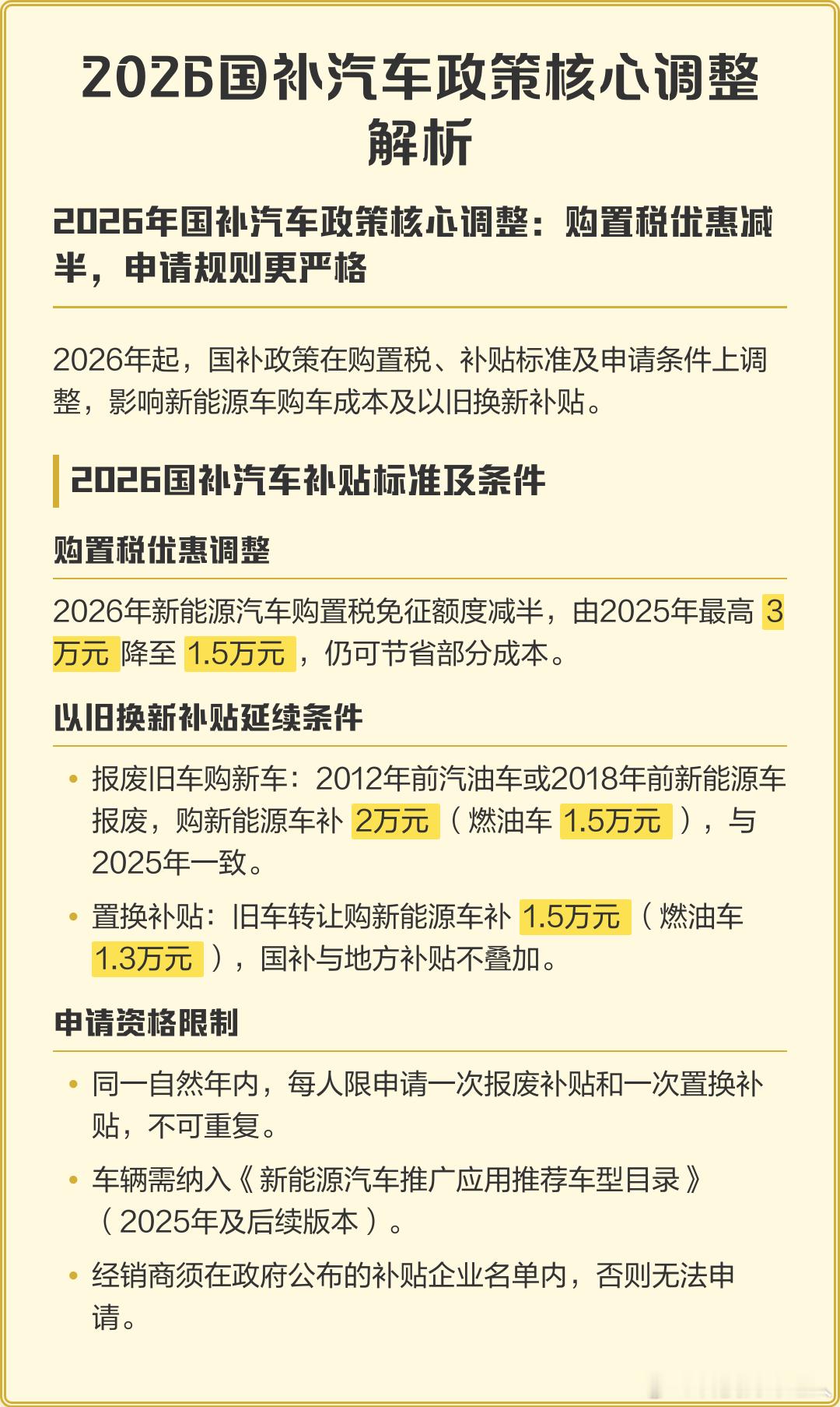 2026新国补来了2026新国补重磅落地,实打实的消费红利已就位!这次补贴覆盖汽车、家电、数码智能等多个刚需领域,还新增了民生相关的设备更新支持,不管是换车还是焕新家居数码,都能享优惠。汽车方面,报废或置换旧车购新车都有补贴:报废符合条件的旧车换新能源车补车价12%(最高2万),换2.0升及以下燃油车补10%(最高1.5万);置换新能源车补8%(最高1.5万),置换燃油车补6%(最高1.3万),旧车注册登记时间也放宽了范围。家电聚焦1级能效的冰箱、洗衣机、电视等6类产品,数码智能则包含手机、平板、智能手表等4类(单价不超6000元),两类均按最终售价15%补贴,家电单件最高补1500元,数码产品最高补500元,每人每类限补1件。此外,各地还能自主加码智能家居、适老化家居等补贴,老旧小区加装电梯、养老机构设备更新也被纳入支持范围,绿色化、智能化产品和民生需求都被重点关照~