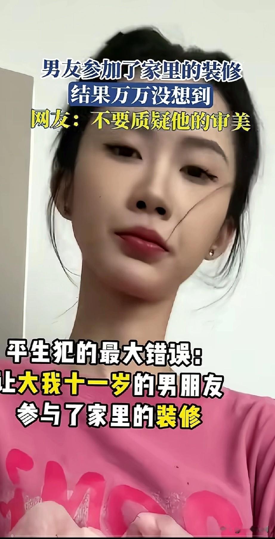 女子吐槽自己的男友参与了自己家的装修,让她万万没想到, 她觉得平生犯的最大的错误, 就是让大她11岁的男友参与了她家的装修,她指着入户门的开关, 嫌弃男友给她家开关周围贴的贴画, 实际上看着挺好看, 但有看她不喜欢于是就换了一个, 新换的是一个爱心的造型, 接着她又吐槽了自己卧室的床头柜上面的画,本来他的男友用他们两个人的合照,贴在了一幅木质的画画里面, 看着挺文艺的, 她却觉得非常土, 于是想让男友换一个, 结果男友给她换了一个贴画, 家和万事兴的贴画也很不错, 结果她还是不满意, 觉得那个太土了, 结果网友纷纷评论到不要质疑他的审美,看来网友对他男友的眼光还是很赞同,说真的,她男友的眼光确实可以, 但是她就是看不上, 这难道就是身在福中不知福吗? 恋爱中的情侣,应该天天联系吗 恋爱脑 女朋友装修