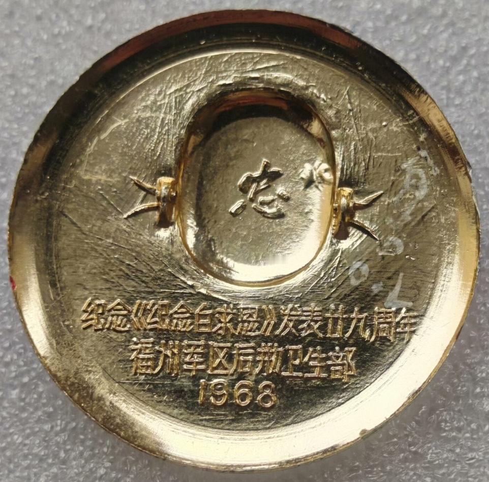 #红色文化# 毛主席像章欣赏: 《纪念白求恩【忠·纪念〈纪念白求恩〉发表二十九周年·福州军区后勤卫生部·1968】》