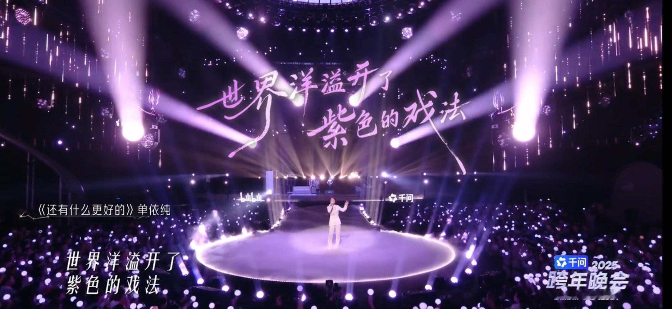 单依纯紫色舞台接好运今年跨年晚会的舞台设计都很有巧思,单依纯的表演环节尤为惊艳—